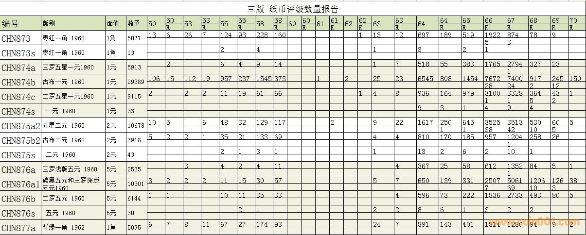 PMG紙幣評(píng)級(jí)數(shù)量報(bào)告 ..