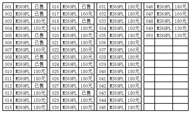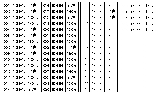 評級普通(精制)紀念幣交易