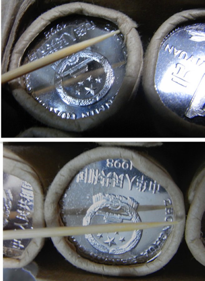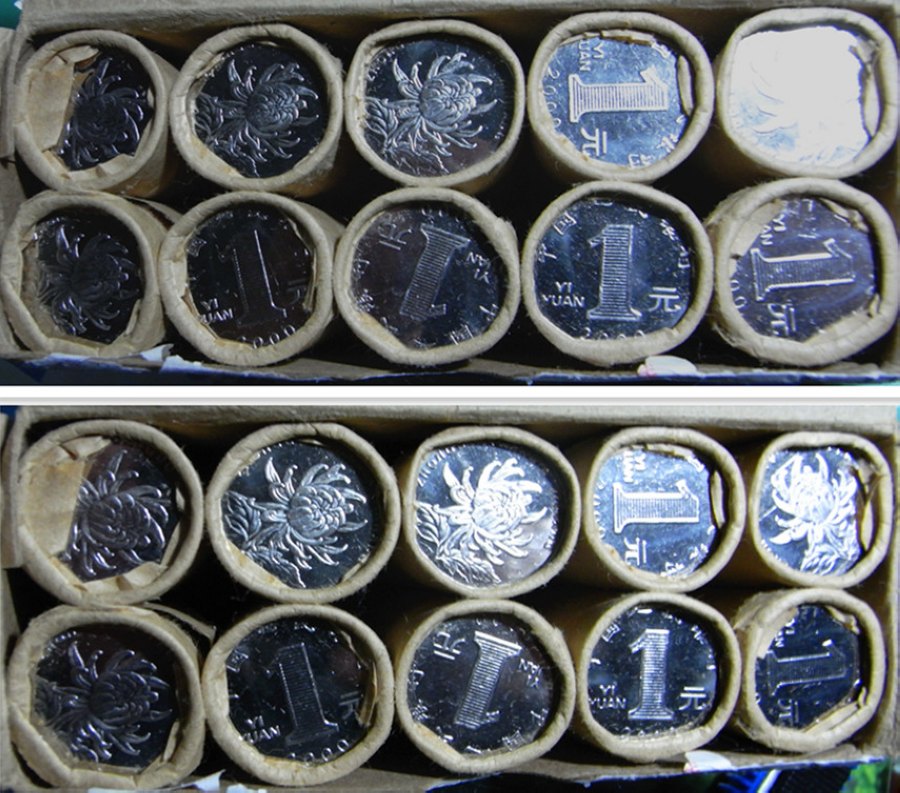 你的1元不是分幣鋁合金材料,材料更硬分幣不一樣,漂亮點很正常!