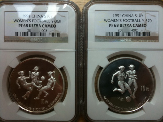 喜歡和關(guān)心過(guò)足球的人都不會(huì)忘記這段歷史,1991年,第一界女足世界杯在中國(guó)廣州正式舉行,為了紀(jì)念這個(gè)劃時(shí)代的比賽,中國(guó)人民銀行發(fā)行了這套金銀紀(jì)念幣。每次看到這套幣中在綠茵場(chǎng)上颯爽英姿的身影時(shí)就情不自禁的想到了一個(gè)人。這張照片給了我們太多的回憶了,認(rèn)得出照片中的9號(hào)嗎?就是孫雯!1999年帶領(lǐng)中國(guó)女足與美國(guó)隊(duì)爭(zhēng)奪世界杯冠軍,最后點(diǎn)球惜敗,屈居亞軍,這是中國(guó)足球隊(duì)有史以來(lái)最好的成績(jī)。收藏錢幣,珍藏記憶。發(fā)行量只有兩千多套,送評(píng)68分以上只有區(qū)區(qū)數(shù)十套,惜售價(jià)4850元。