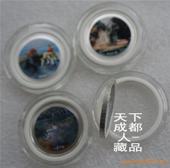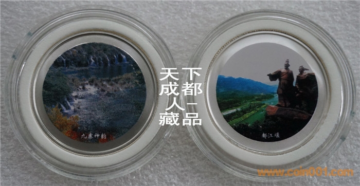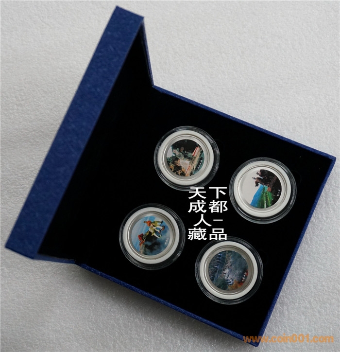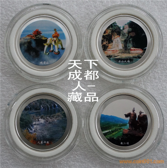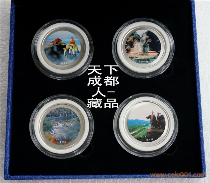 少見雙色風(fēng)光純銀套章:1998年沈陽造幣廠定制精鑄《四川著名風(fēng)光(雙色精制)純銀紀(jì)念套章》一盒4枚裝;該風(fēng)光套章材質(zhì)純銀、成色99.9、總重2盎司(每枚重1/2盎司)共4枚,直徑33毫米、雙色精制幣形鑄造工藝,限量定制鑄造(注:定制鑄造無證書);