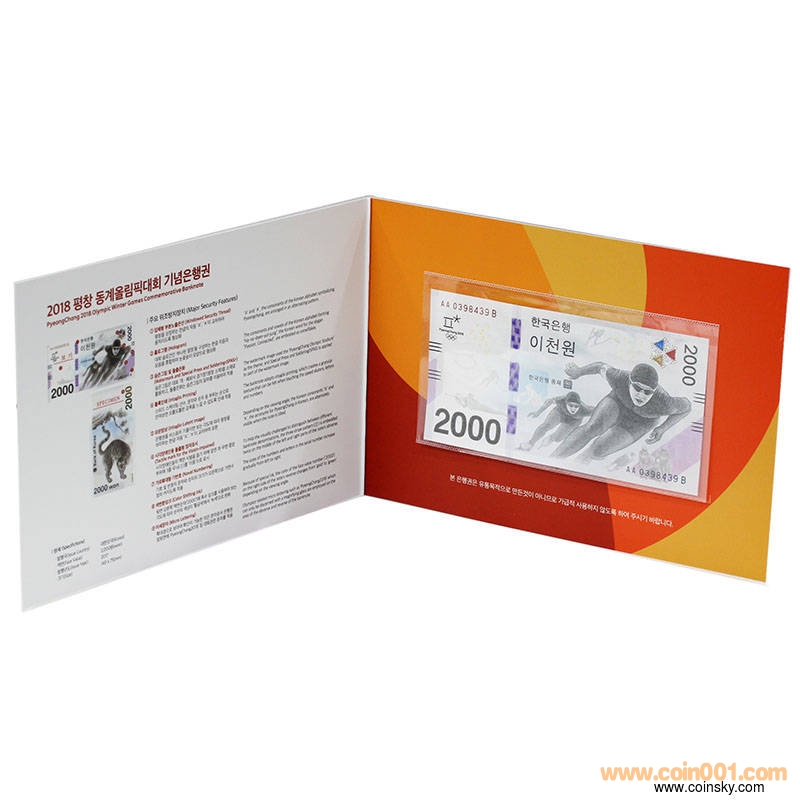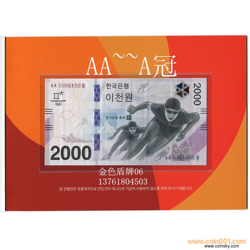 AAA首發(fā)冠 韓國(guó)2018年平昌冬奧會(huì)紀(jì)念鈔2000韓元 可選號(hào)碼