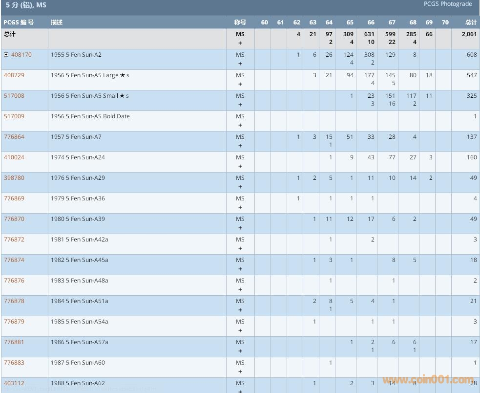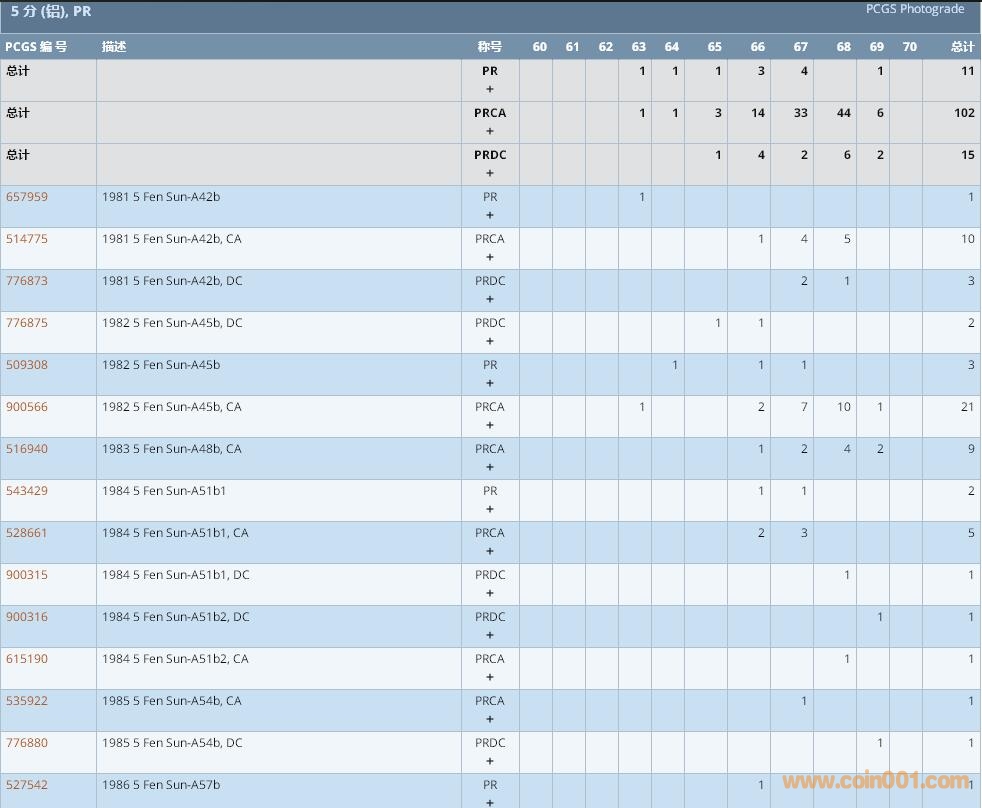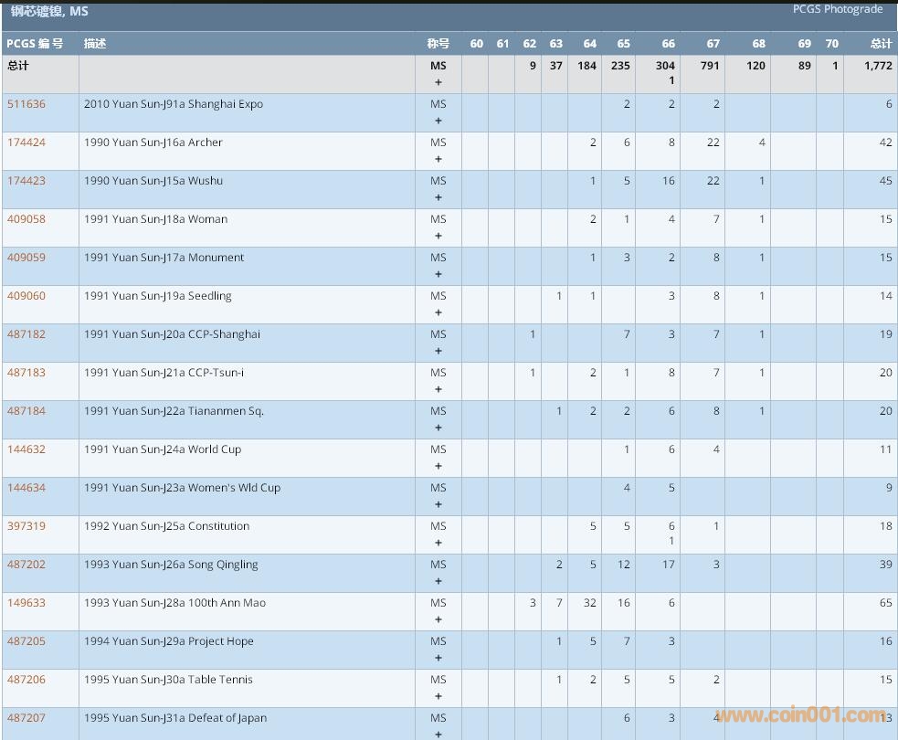 PCGS硬幣評(píng)級(jí)數(shù)量報(bào)告 ..