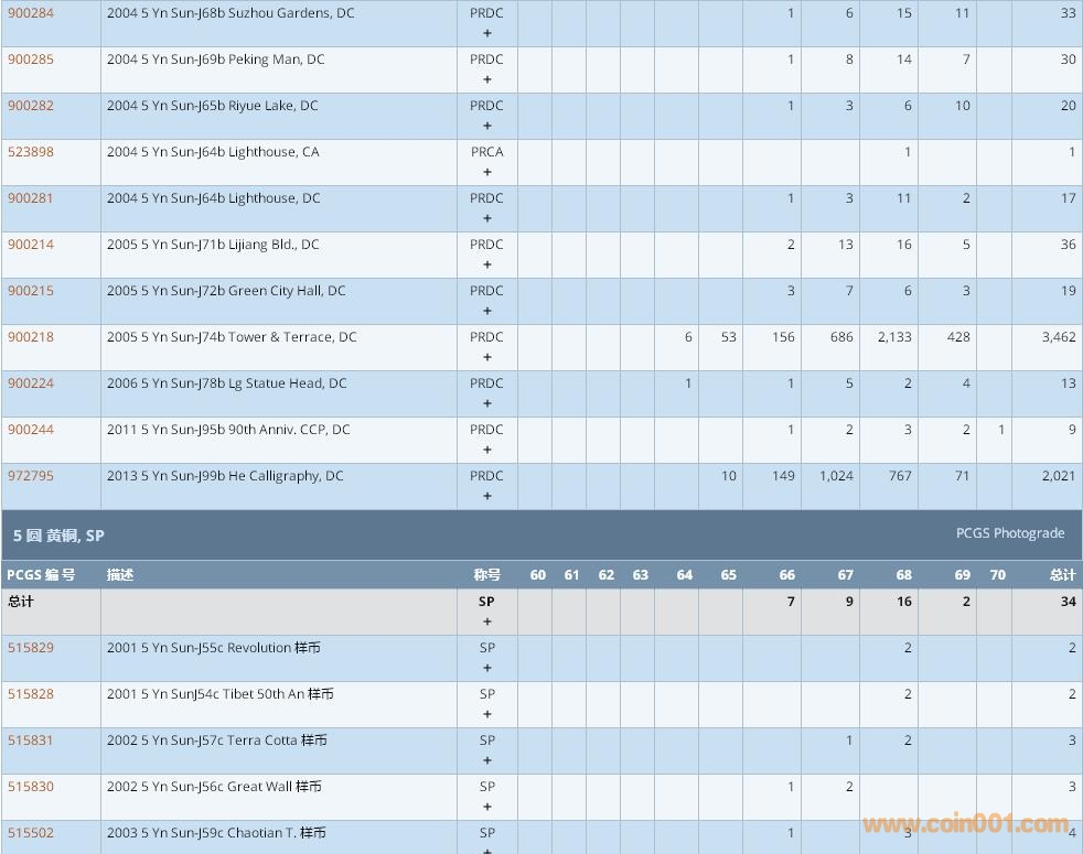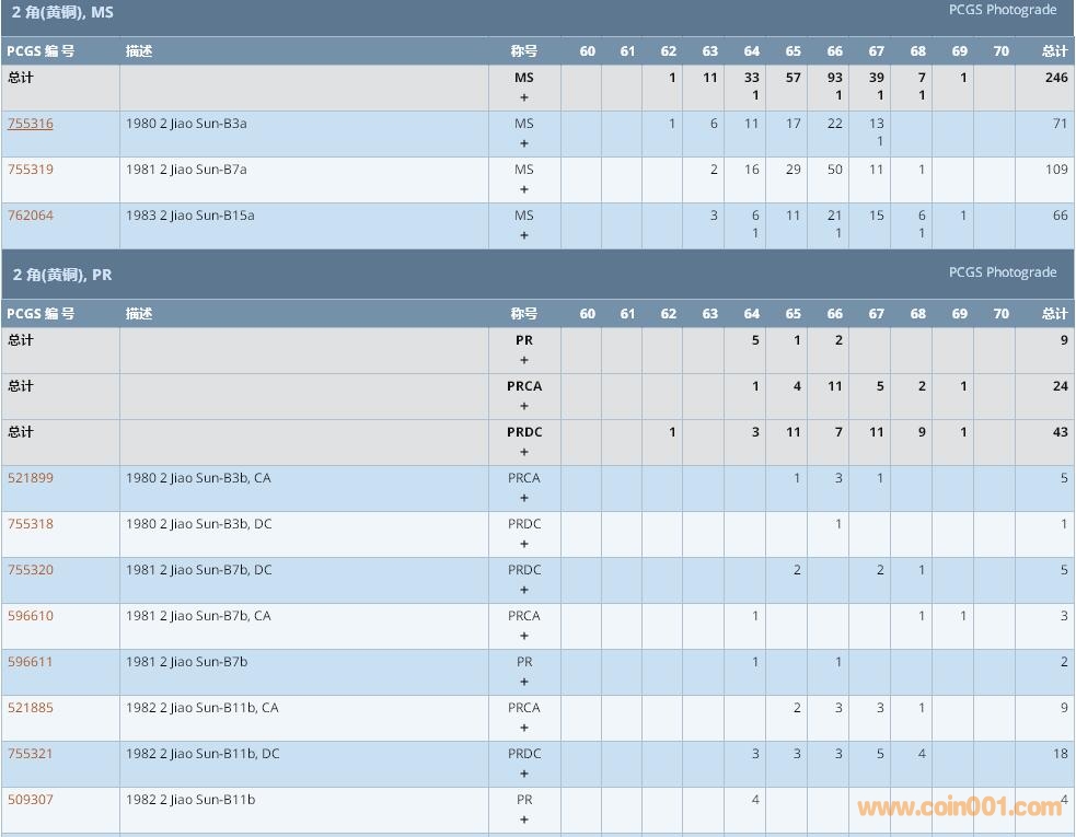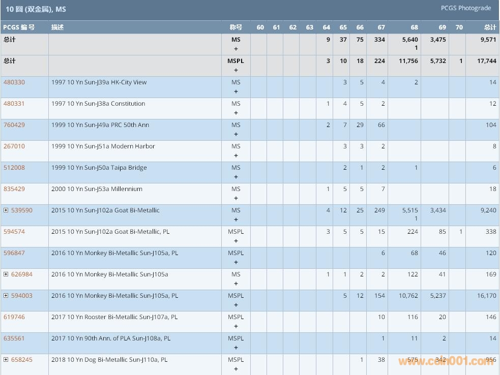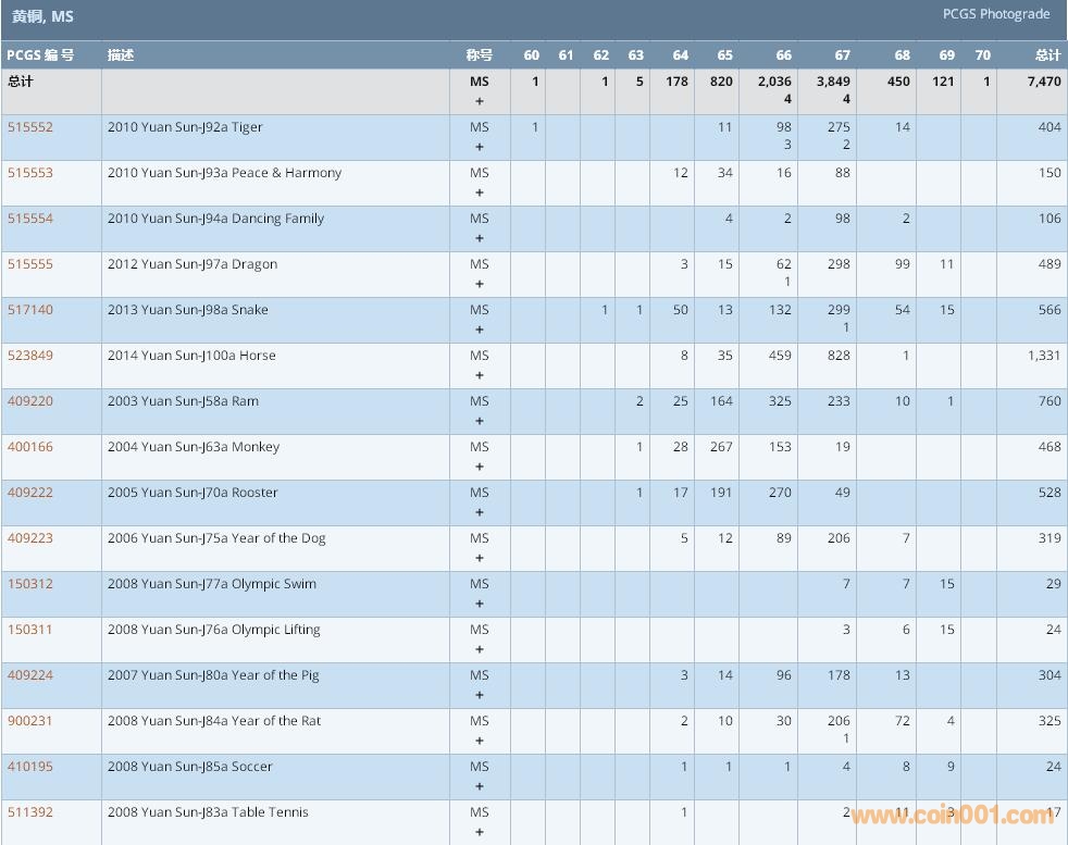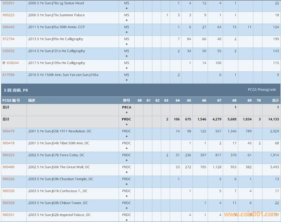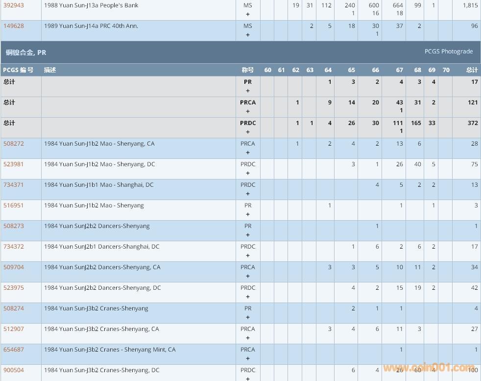 PCGS硬幣評(píng)級(jí)數(shù)量報(bào)告 ..