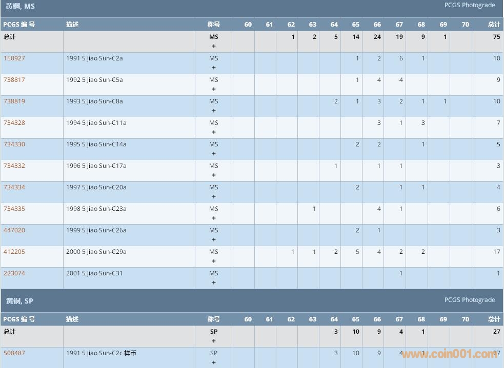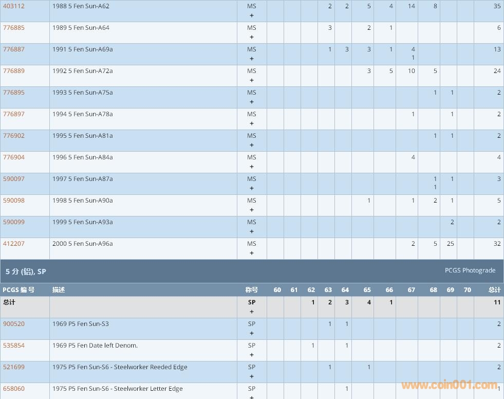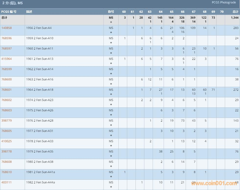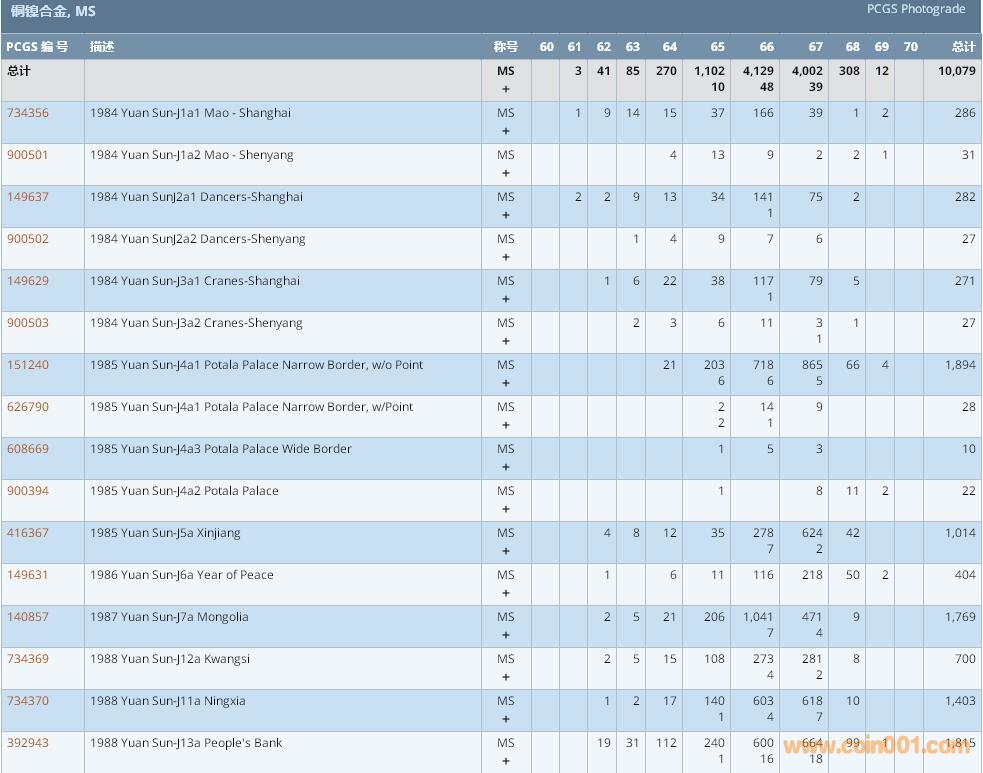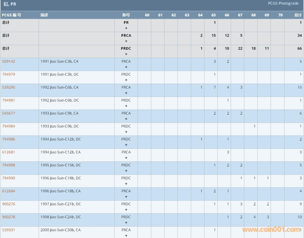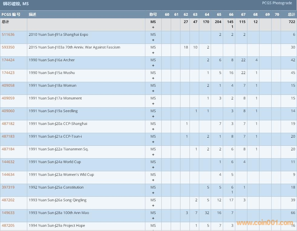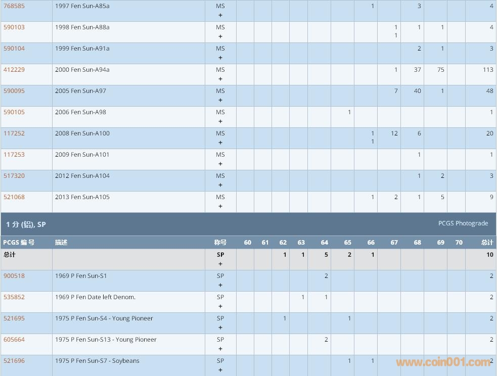 PCGS硬幣評(píng)級(jí)數(shù)量報(bào)告 ..
