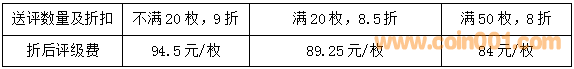 3.送評(píng)其他服務(wù)等級(jí)的硬幣(紙幣),給相應(yīng)服務(wù)等級(jí)評(píng)級(jí)費(fèi)的9折優(yōu)惠。