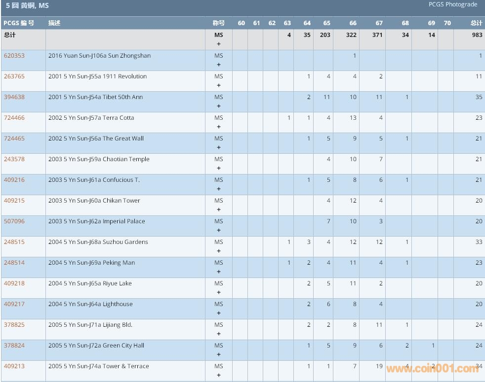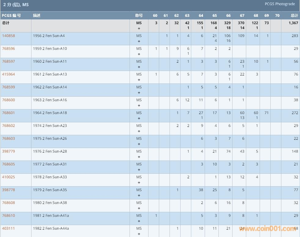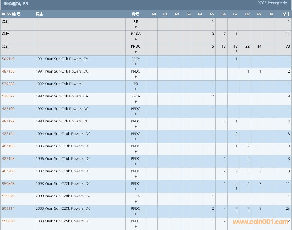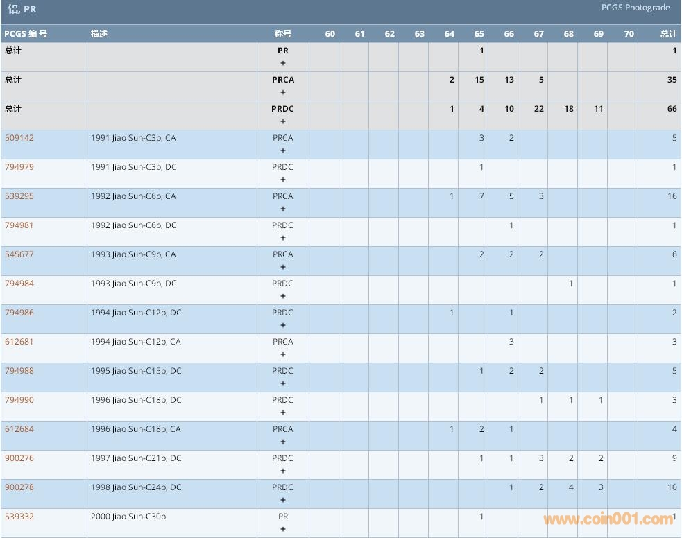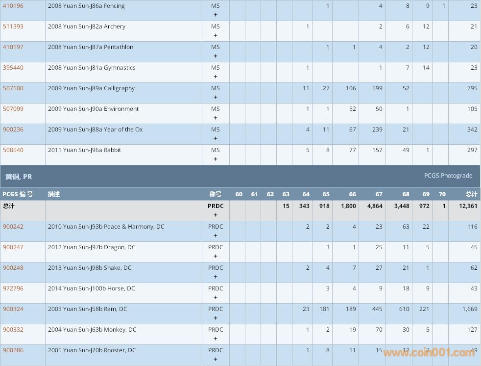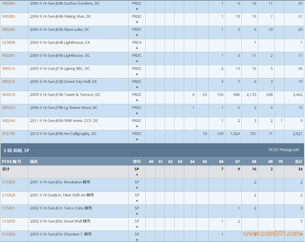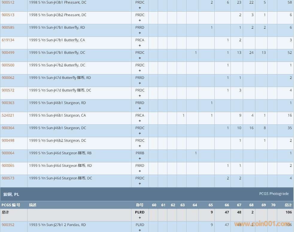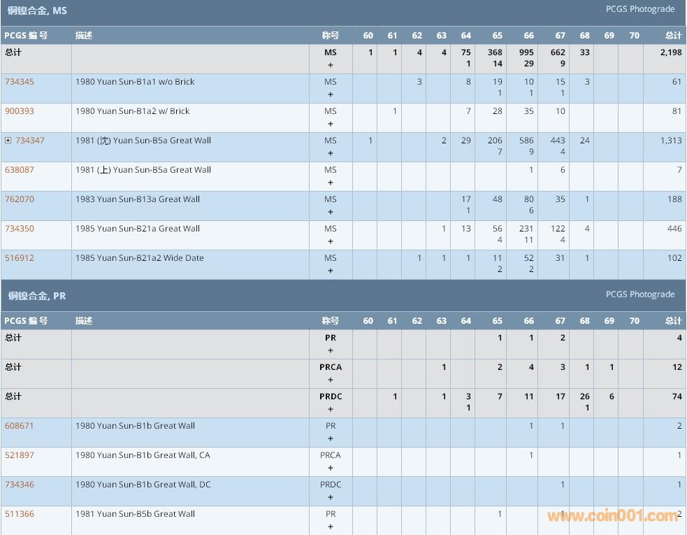 PCGS硬幣評級數(shù)量報告 ..