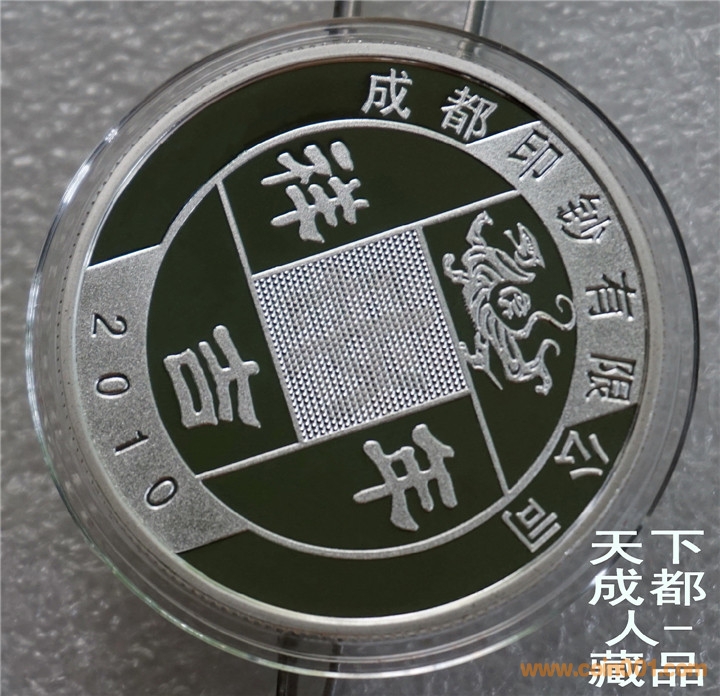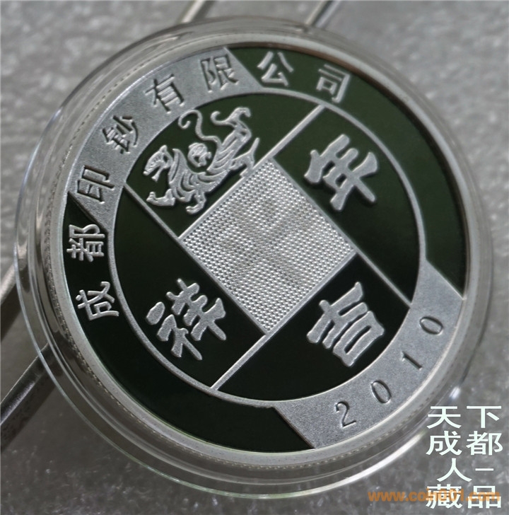 四重潛影工藝、生肖彩色銀章:中國印鈔造幣總公司成都印鈔公司鑄造《2010年生肖虎(精制雙色)潛影彩銀紀(jì)念章》原盒證1枚裝;材質(zhì)純銀、雙色彩色精制帶齒邊工藝,采用四重潛影防偽技術(shù)幣形鑄造工藝、重量一盎司、成色99.9%、直徑40毫米、限量發(fā)行。成鈔司原木盒內(nèi)精美包裝,隨附帶編號(hào)含水印鑒定證書1份。