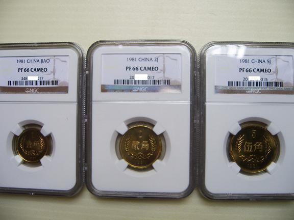 閑下來翻出來幾枚剩余的81角幣和上次賣剩的一枚84二分。 81年P(guān)FCA66(1,2.5角)三枚一起賣2400元。 81年P(guān)FAC67(五角)一枚單賣1200元。 84年P(guān)FCA66(二分)一枚單賣1200元。新疆,西藏,內(nèi)蒙快遞25元另外加,上海,浙江,江蘇,安徽,免郵費(fèi),其余都為12元,快遞不到的請別拍,以我確認(rèn)為主。我不是專業(yè)賣家,沒固定的送貨員,萬一晚一、二天發(fā)貨請諒解。手機(jī)號別人在用,請別打了,呵呵,因?yàn)楸救私?jīng)常(出走),所以麻煩發(fā)站內(nèi)短信或旺旺聯(lián)系,近來我會經(jīng)常上網(wǎng),以我確認(rèn)為準(zhǔn)。