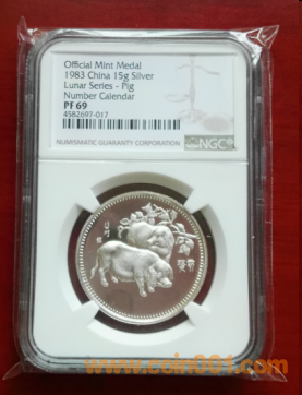 1983年15克豬銀章NGCPF69- ..