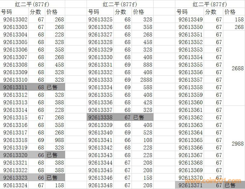 評(píng)級(jí)普通(精制)紀(jì)念幣交易