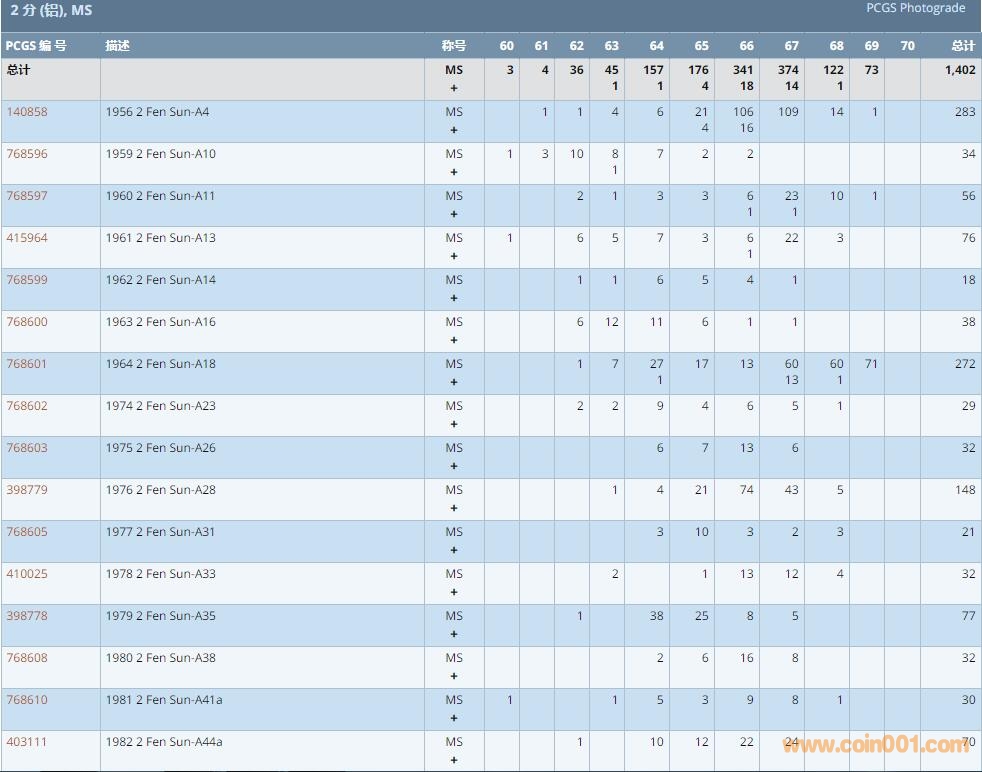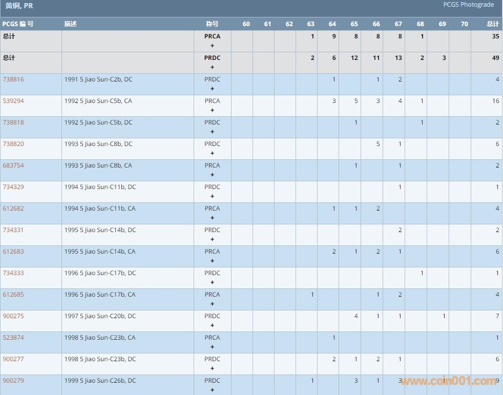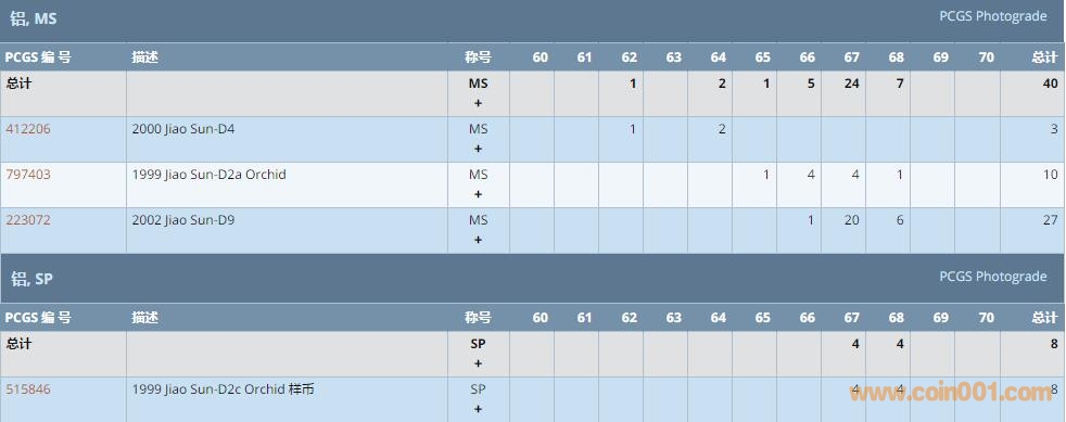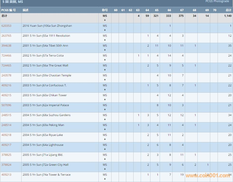 PCGS硬幣評(píng)級(jí)數(shù)量報(bào)告 ..