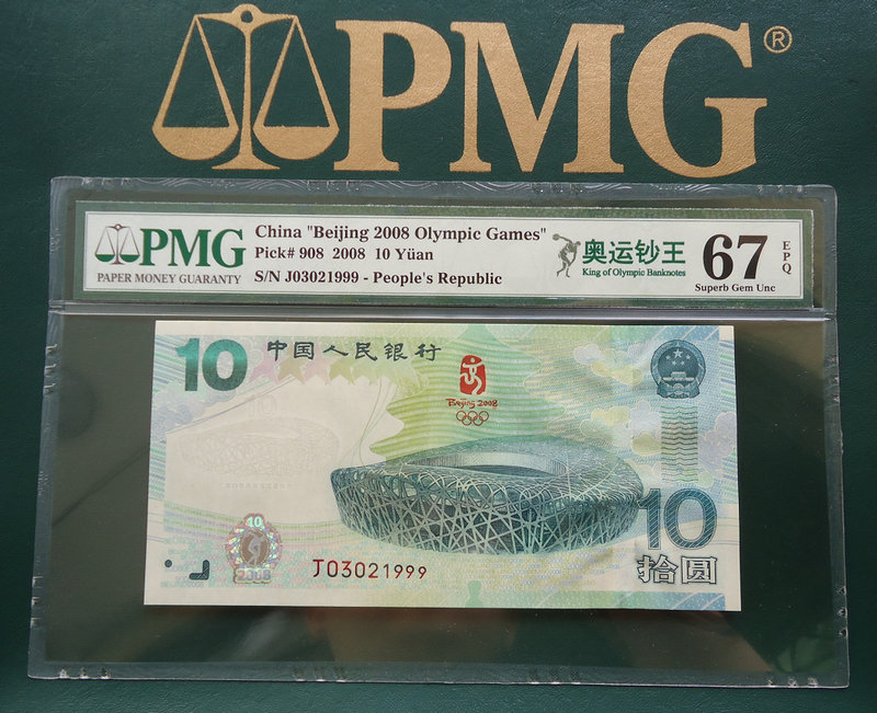 4拍 0元起拍 紀(jì)念鈔幣王 奧運(yùn)綠鈔 PMG 67分 全程無47尾68順發(fā)的牛號+奧運(yùn)鈔王標(biāo)簽的67分一流珍品 熱門的品種+熱門的號碼+熱門的分?jǐn)?shù) 剛嚴(yán)評回來的第三代PMG高清盒!中國唯一 一張錯(cuò)版紀(jì)念鈔 幣王!下一次中國在舉辦奧運(yùn)會(huì)的時(shí)候 中國三地奧運(yùn)鈔就將迎來新一輪的暴漲!