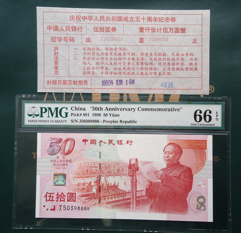 壓軸戲 0元起拍 第五版人民幣 PMG 《GEM》 9950幣王 AH補(bǔ)號 尾9661的靚號 捆拆絕中絕刀貨送評的,剛嚴(yán)評回來的第三代PMG高清盒!99版都是只發(fā)行的了3年的流通鈔,檔次和紅壹圓 棗紅都是同一級別的!9950幣王是第五版發(fā)行最稀少的冠號!