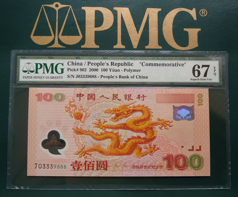 3拍 0元起拍 紀(jì)念鈔 龍鈔 PMG 67分 全程無47牛號是 J08219396 的靚號 + 一流珍品67分 剛嚴(yán)評回來的第三代PMG高清盒!牛號龍鈔 絕對是搶手的硬通貨!百分之90的人第一次去錢幣市場購買的貨都是龍鈔的!