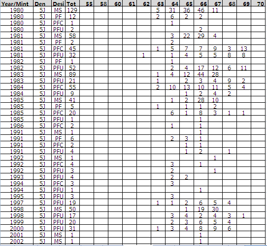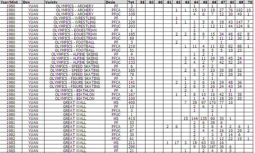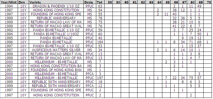 NGC硬幣評級分?jǐn)?shù)分布 ..