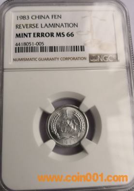 1、出1983年1分NGC MS66 評(píng)級(jí)錯(cuò)幣一枚(開片)