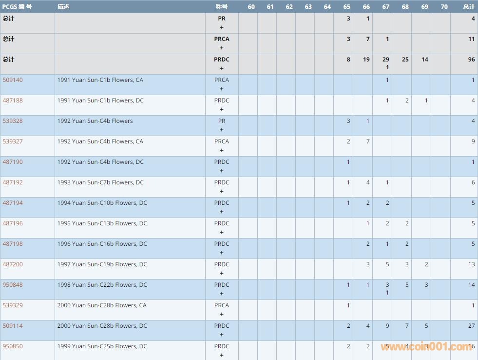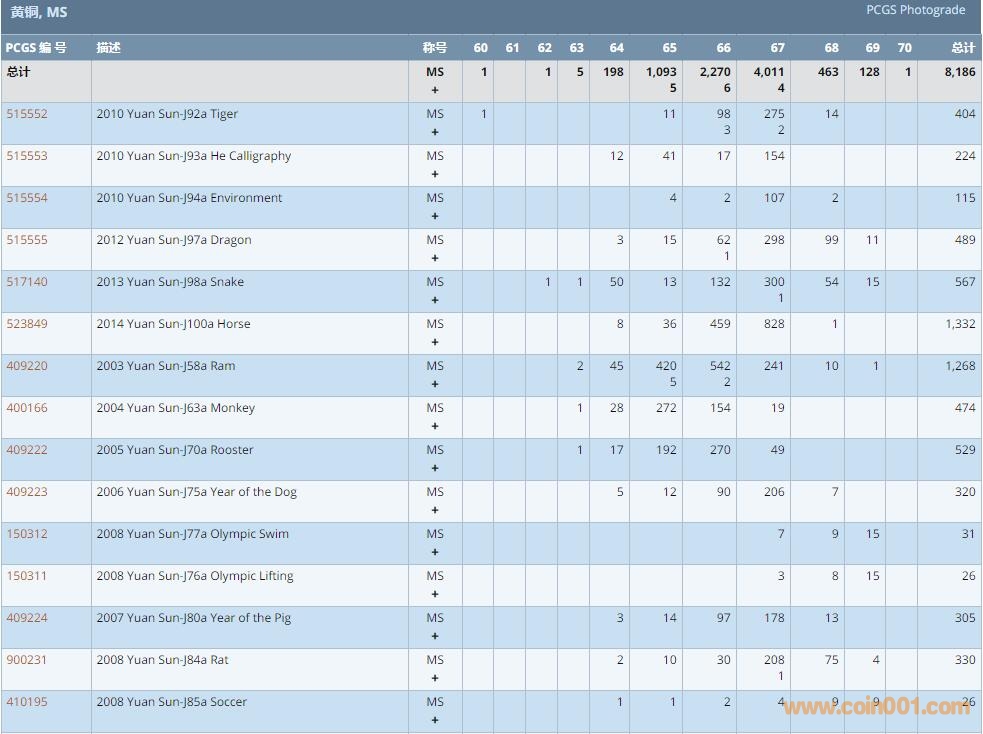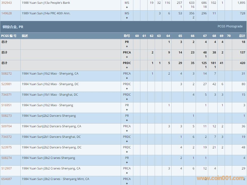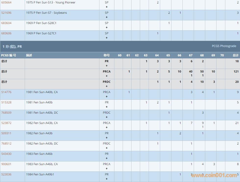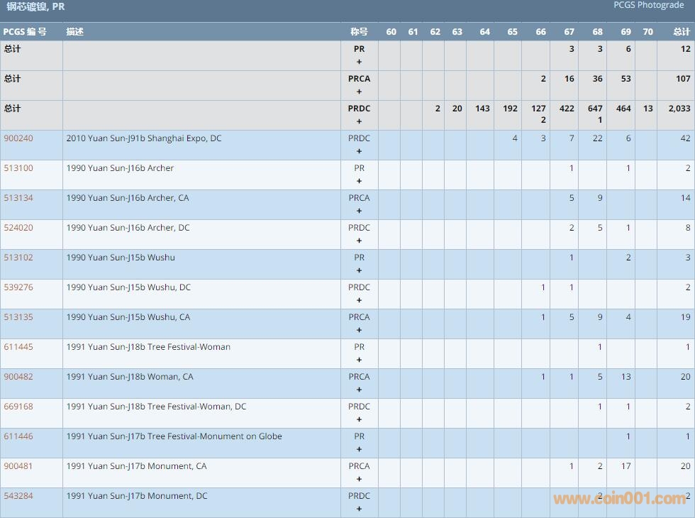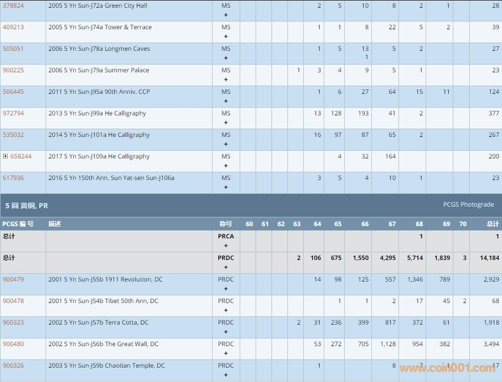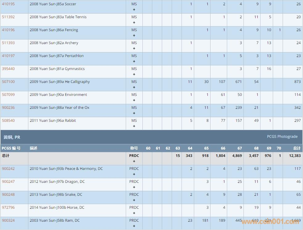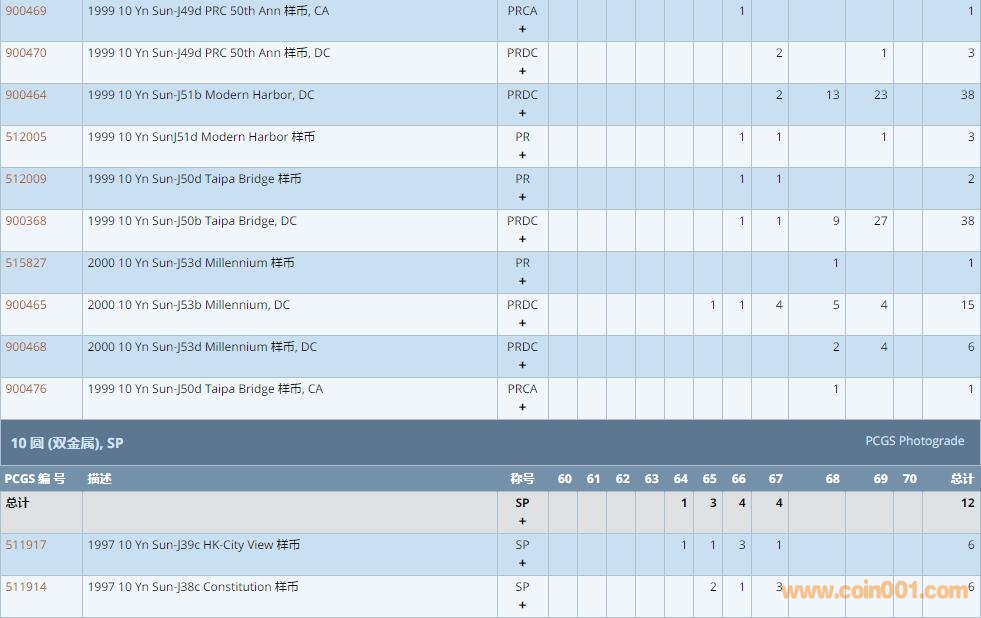 PCGS硬幣評級數(shù)量報(bào)告 ..
