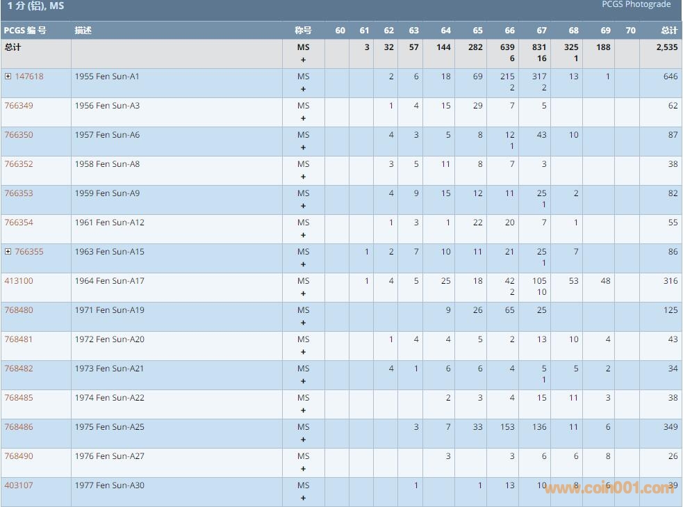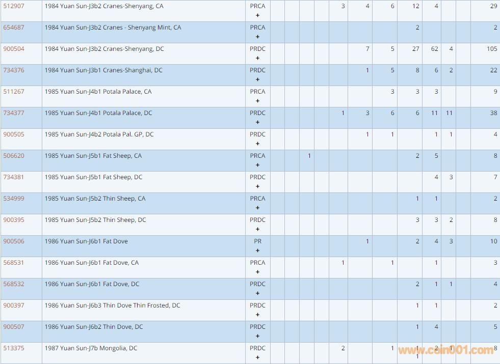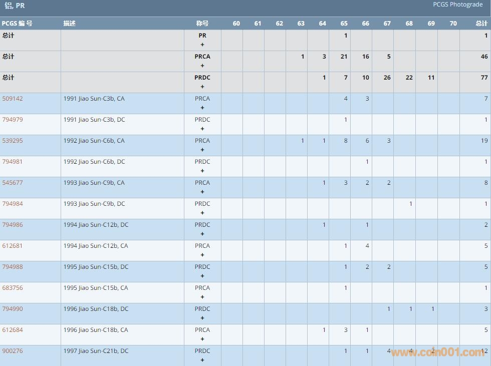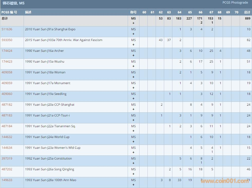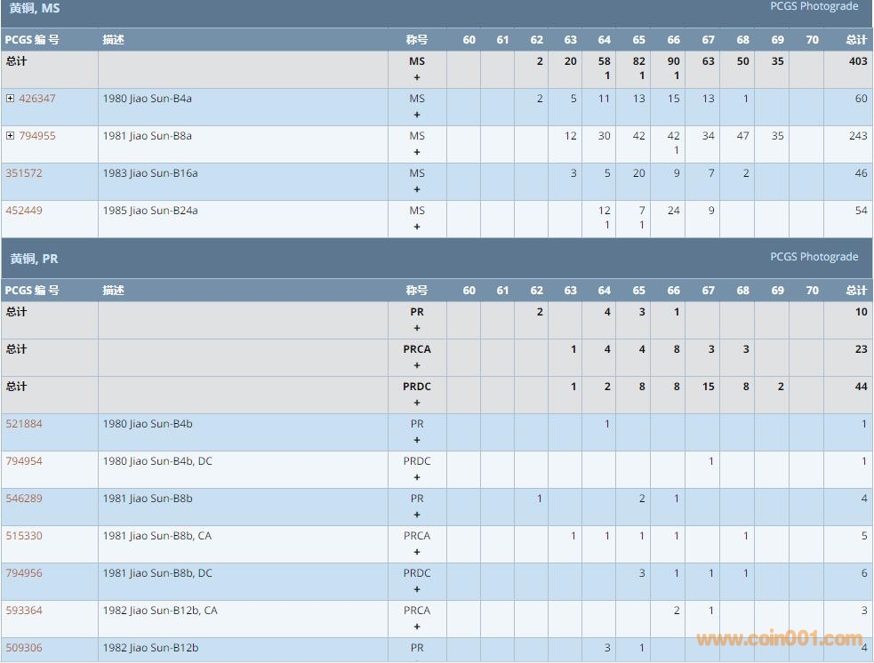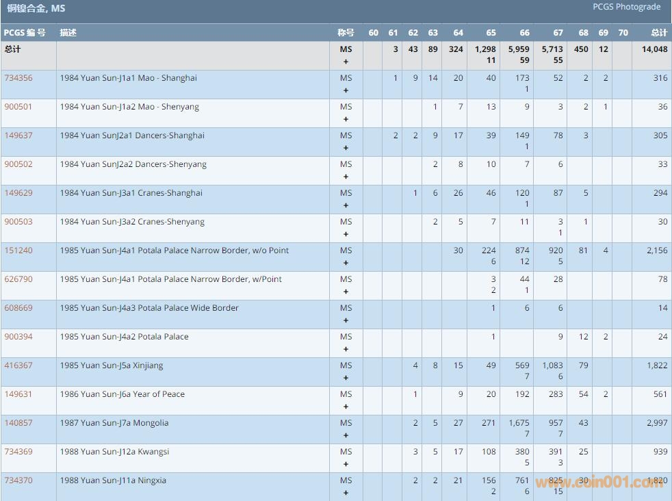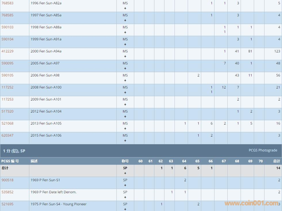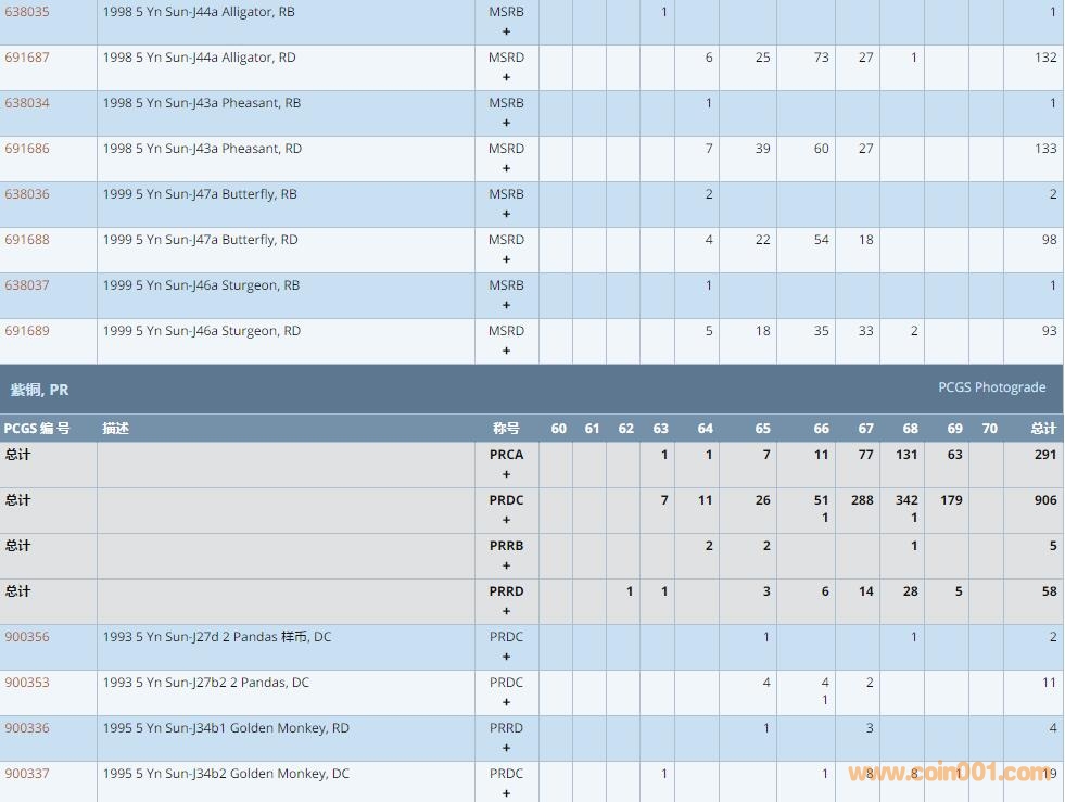 PCGS硬幣評級數(shù)量報(bào)告 ..