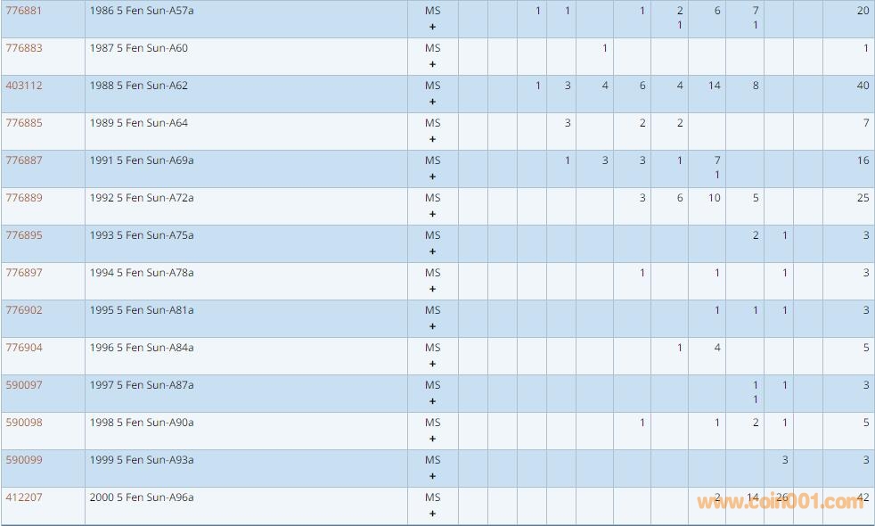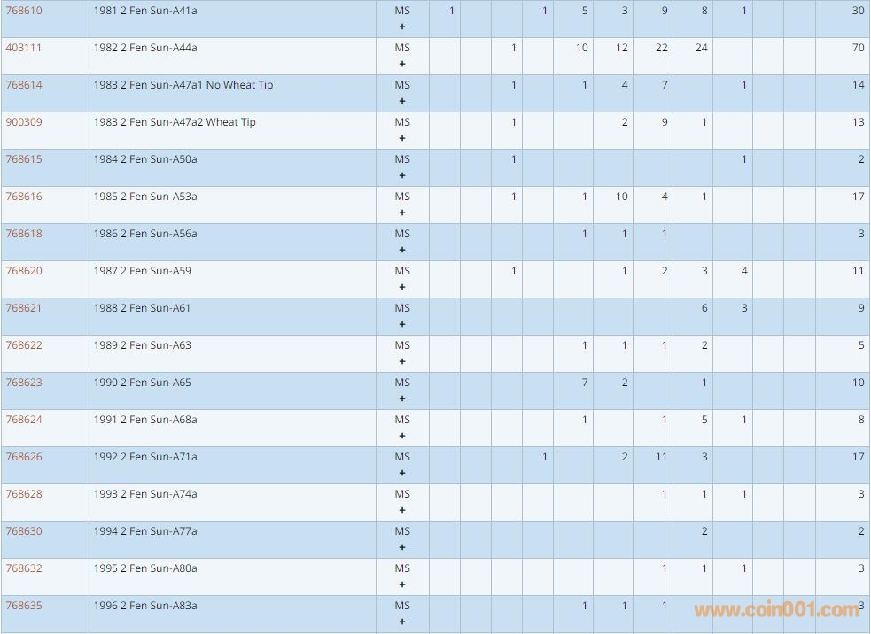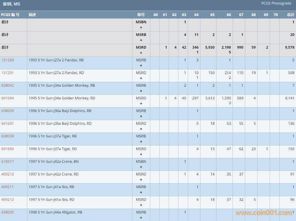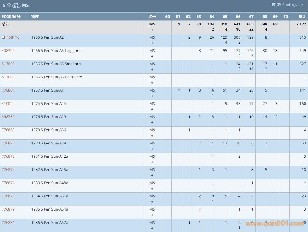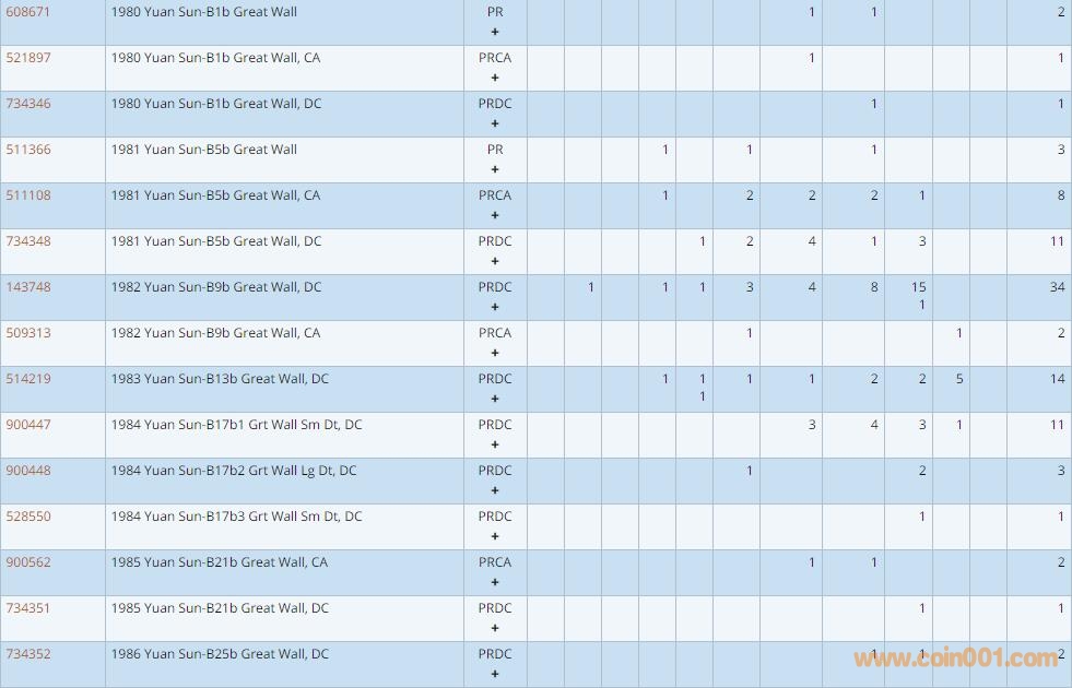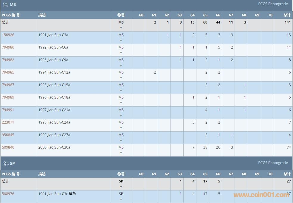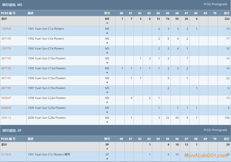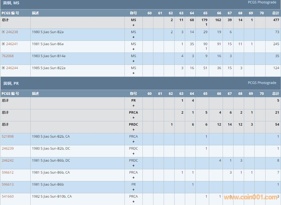 PCGS硬幣評級數(shù)量報(bào)告 ..