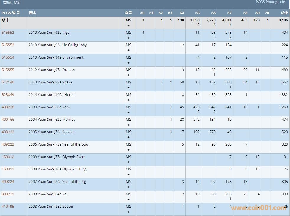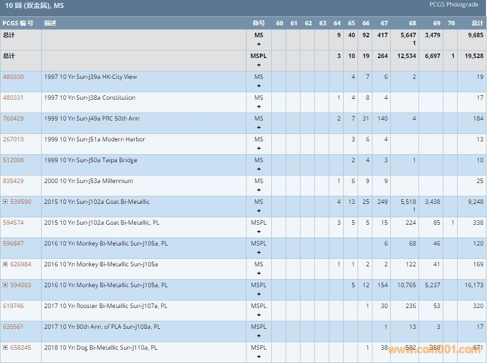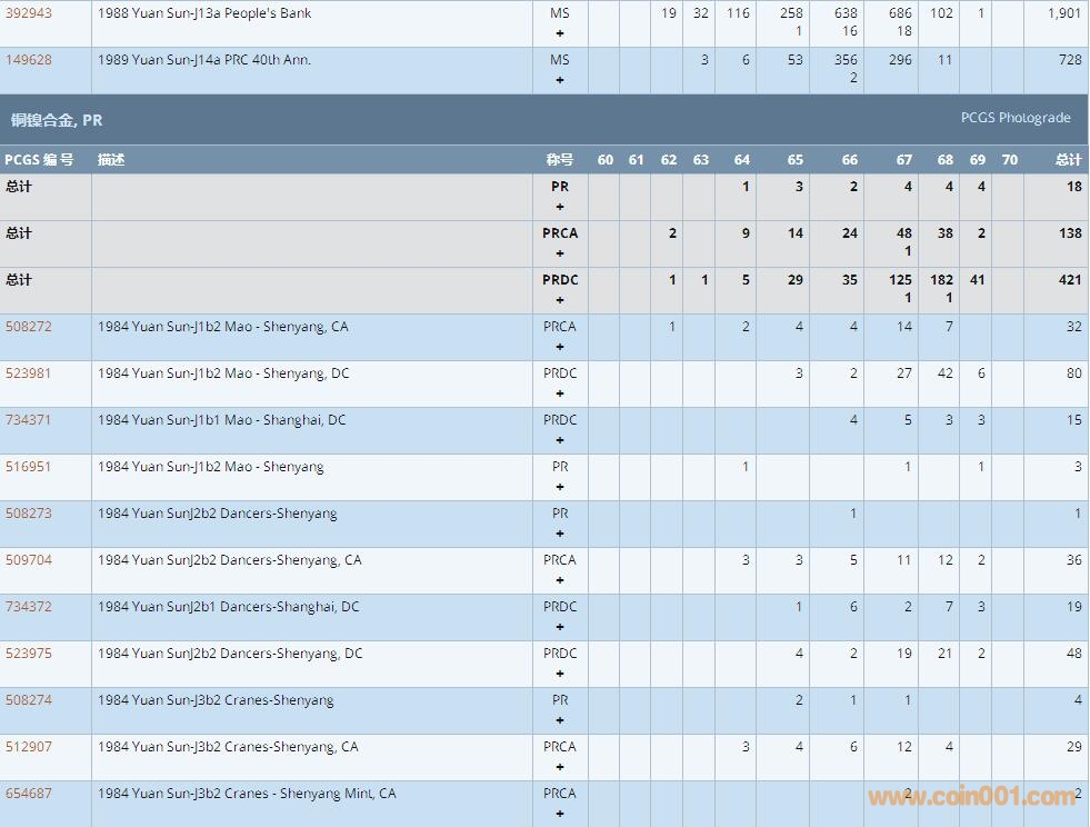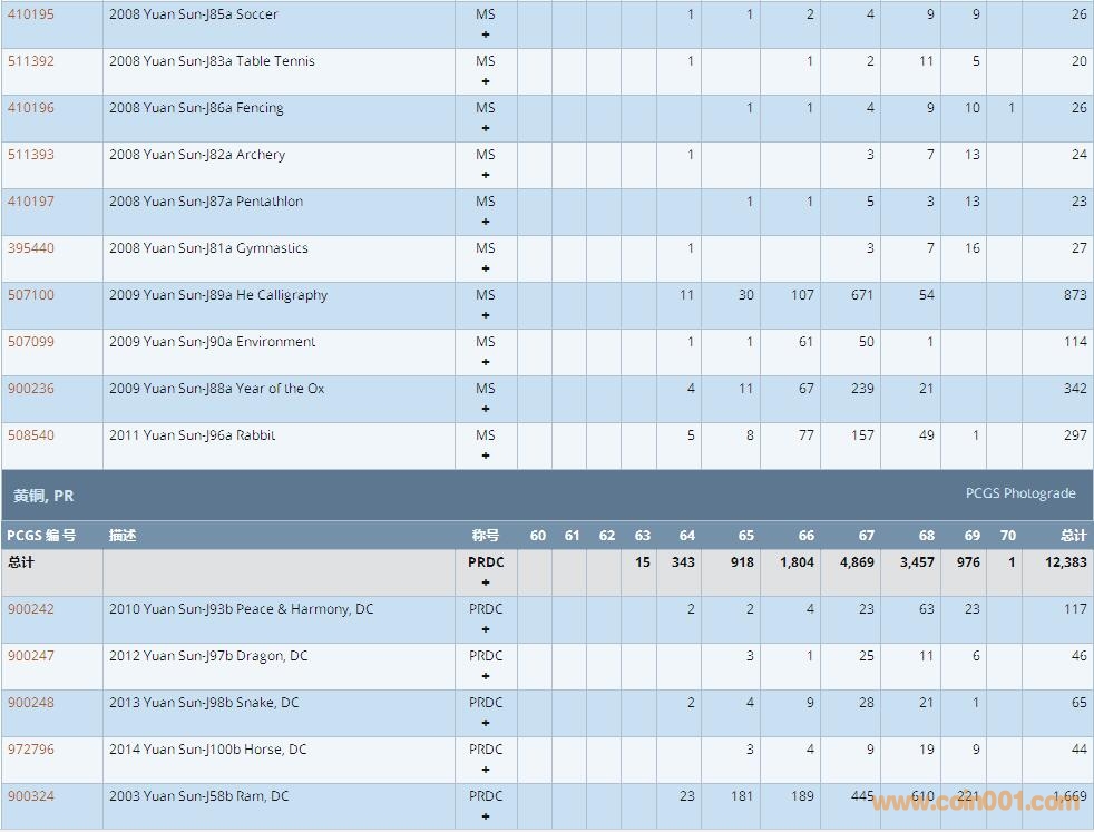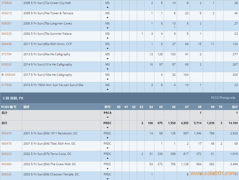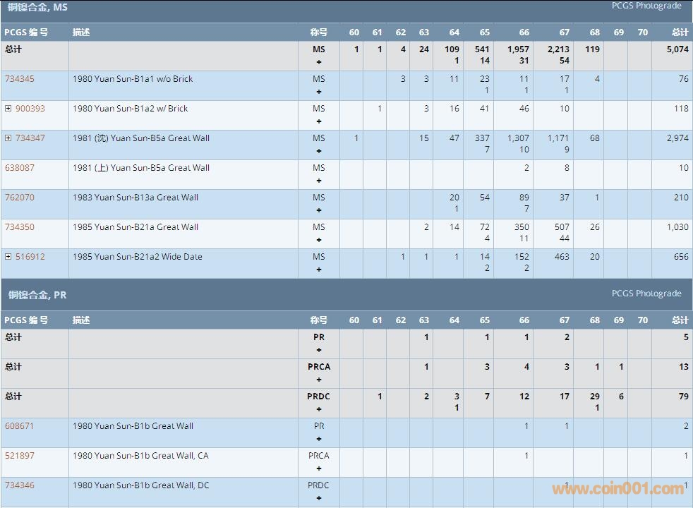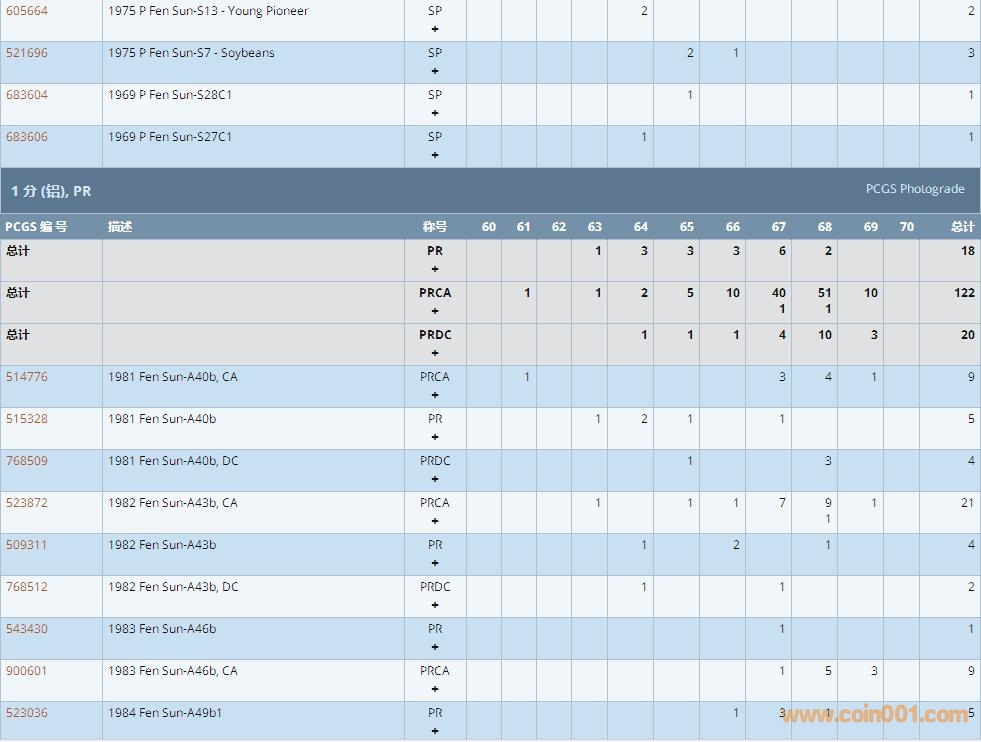 PCGS硬幣評(píng)級(jí)數(shù)量報(bào)告 ..