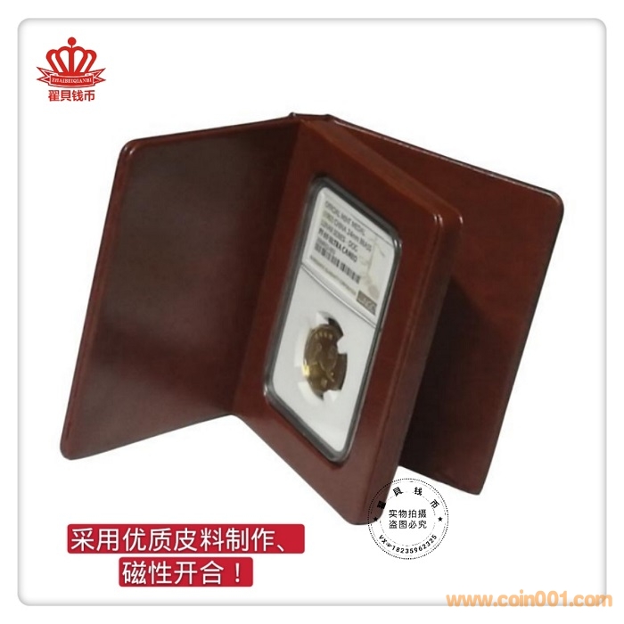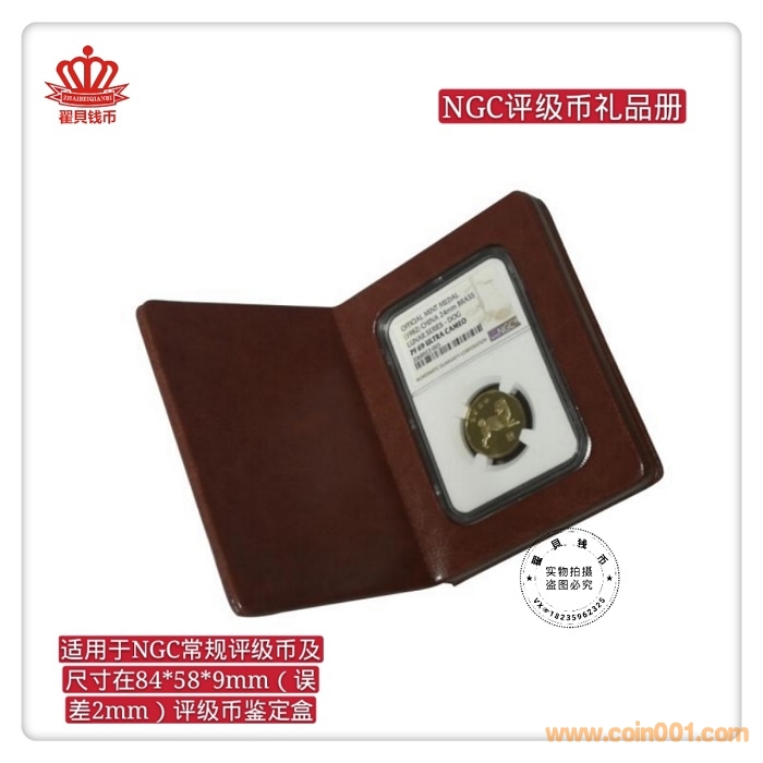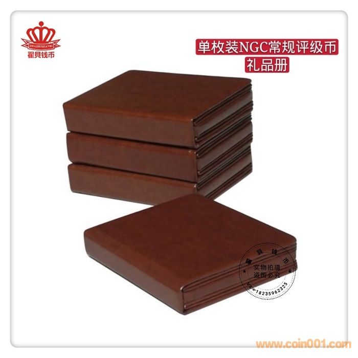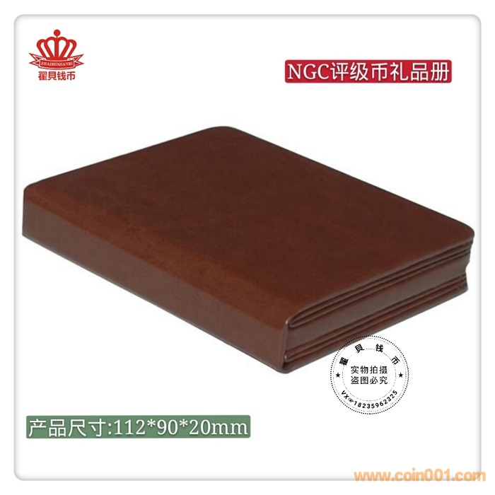(1)NGC評級幣禮品冊(盒)采用優(yōu)質(zhì)皮料制作,磁性開合,冊子外觀尺寸112*90*20MM。