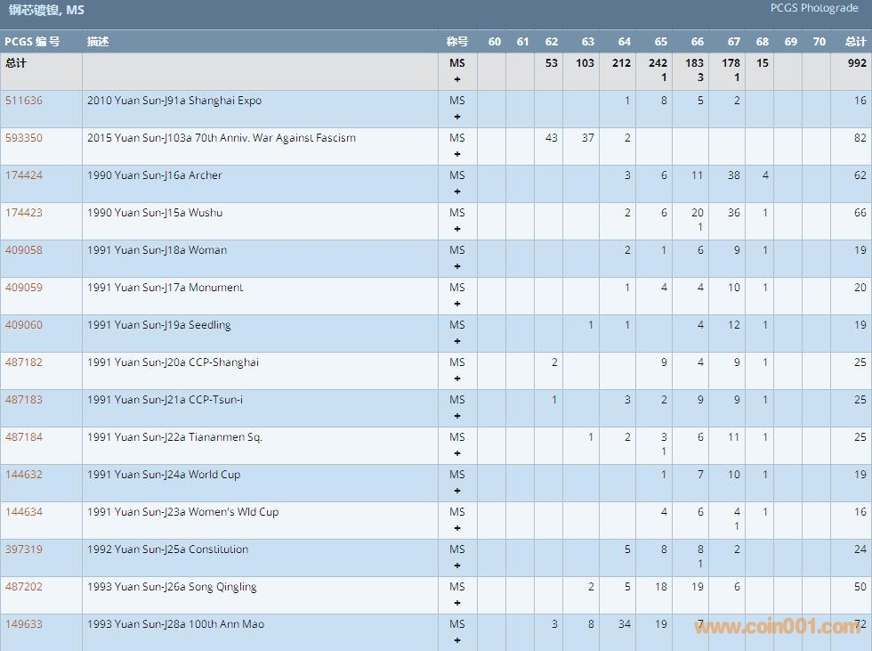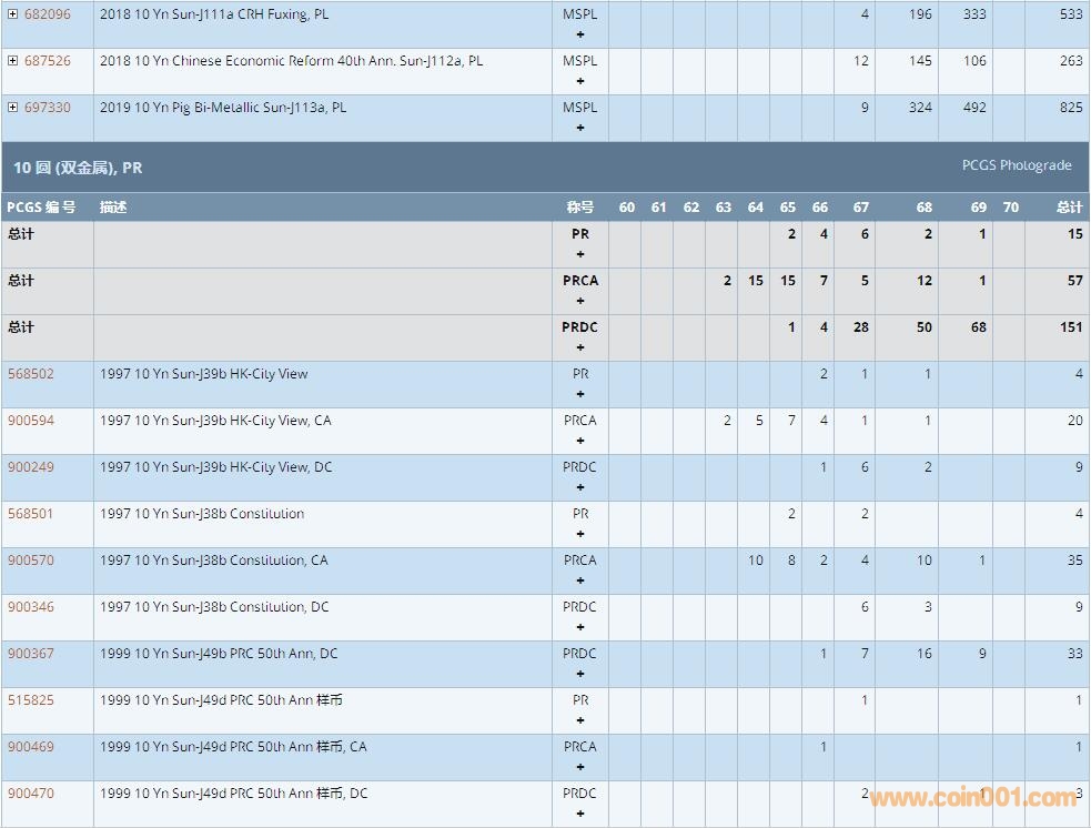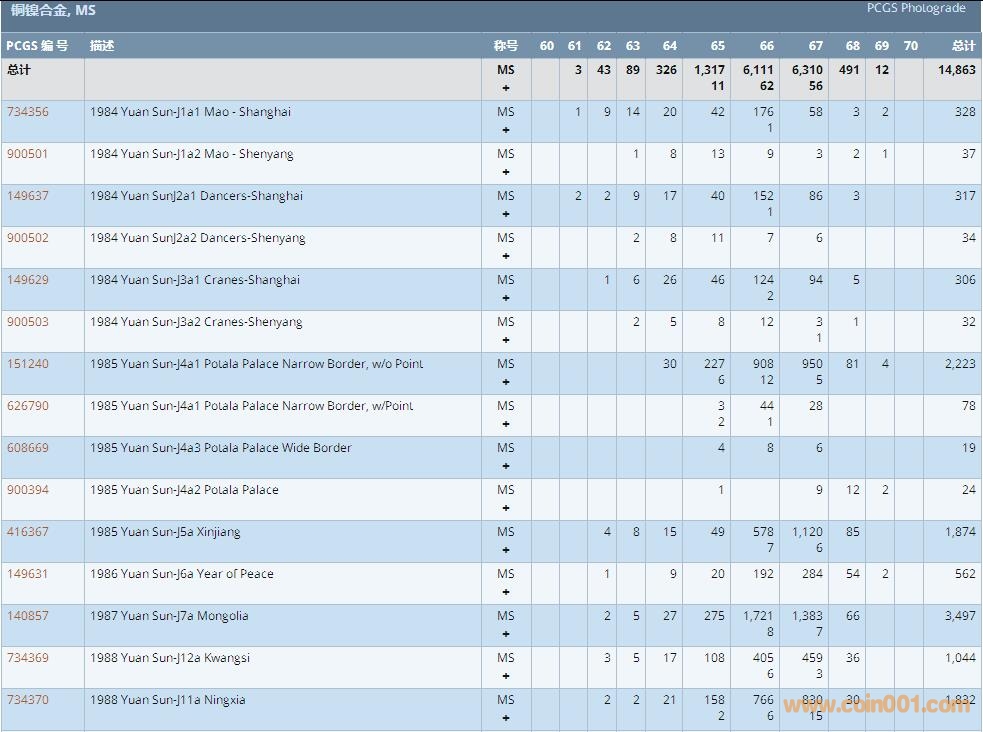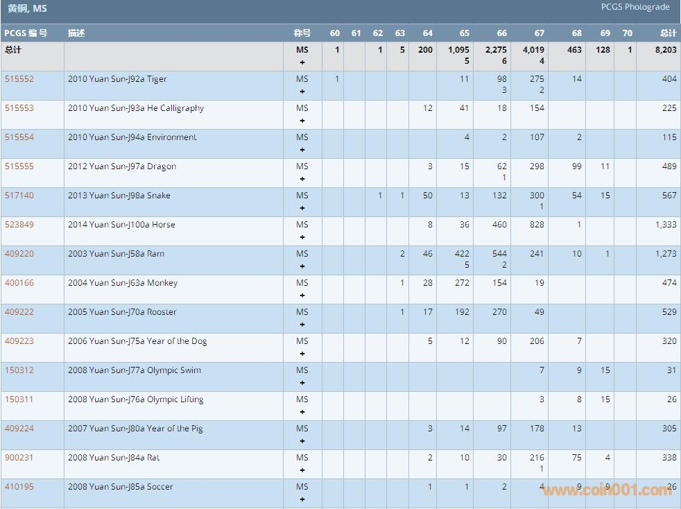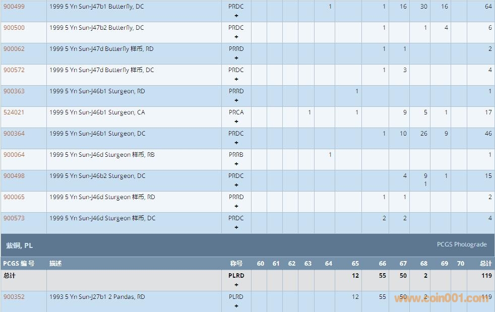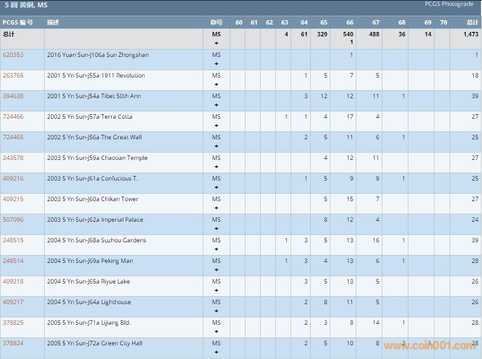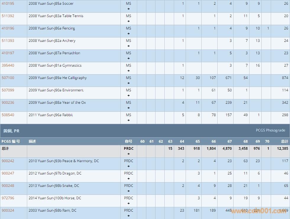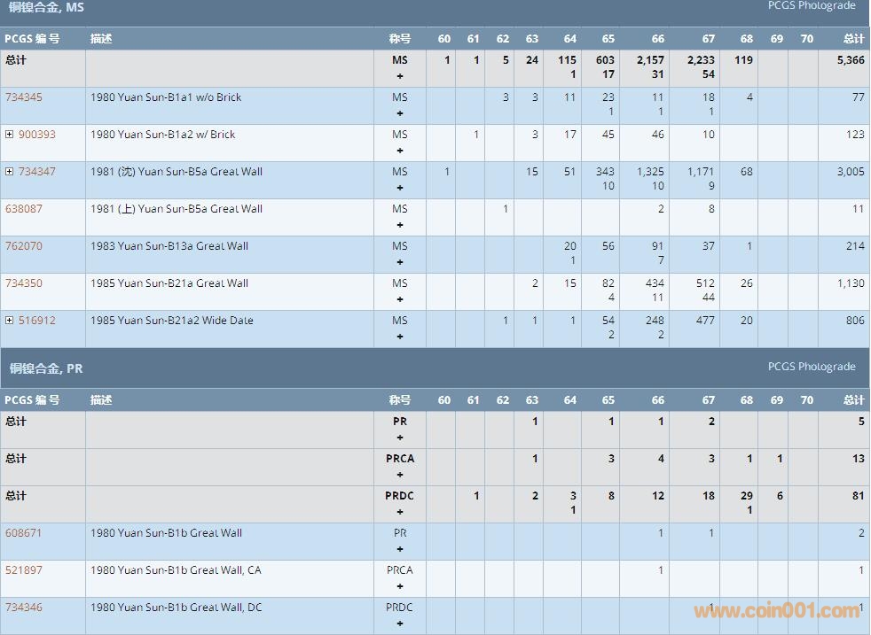 PCGS硬幣評級數(shù)量報告 ..