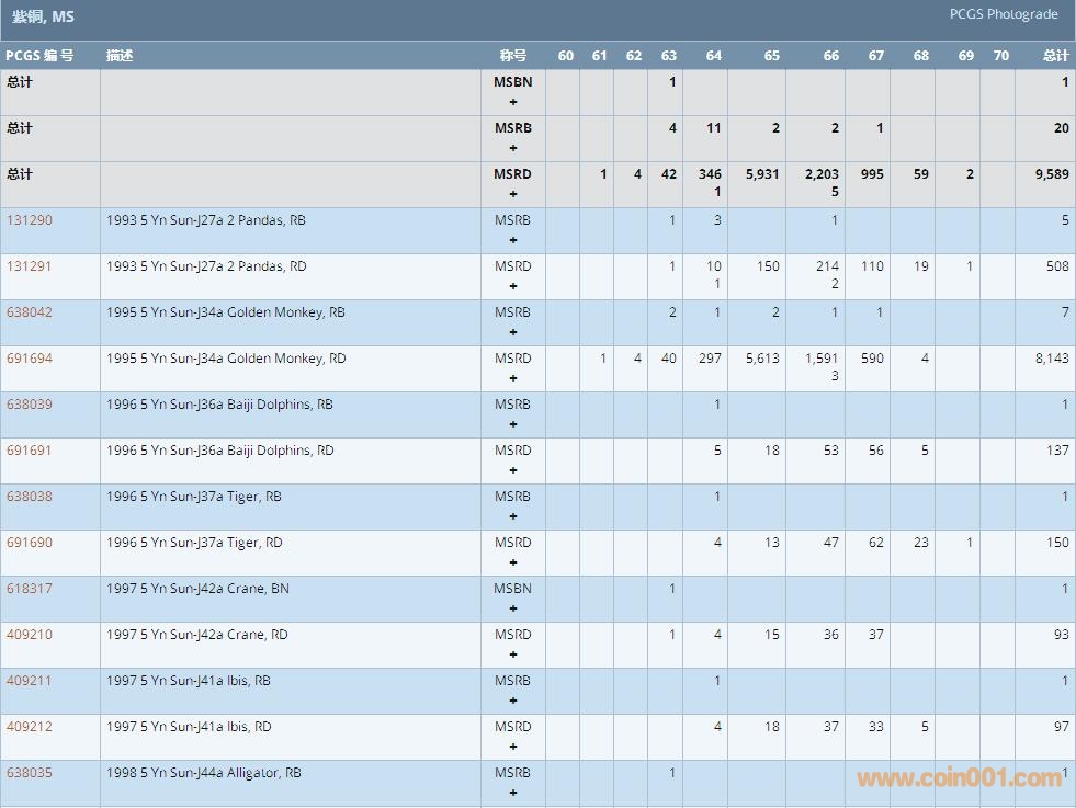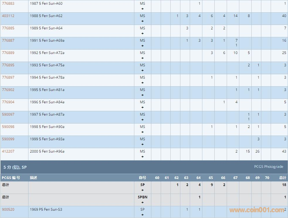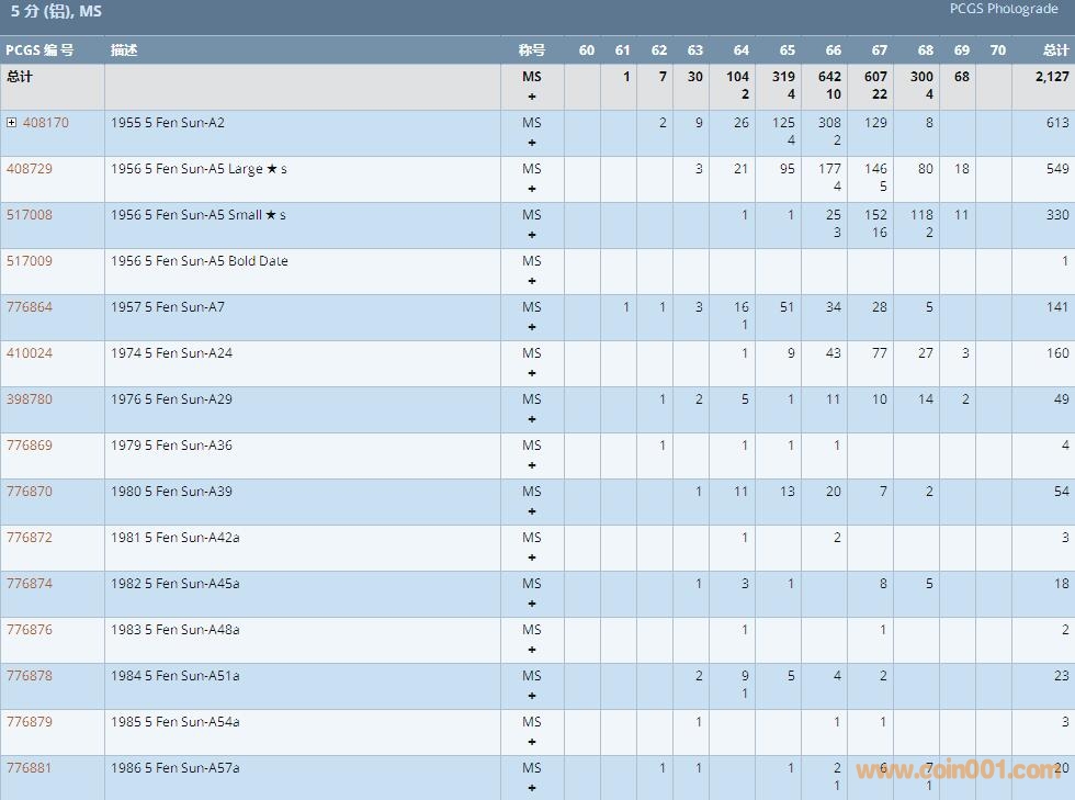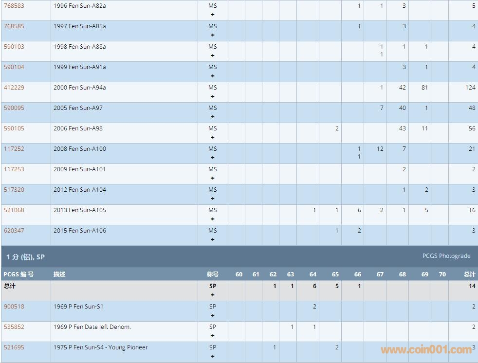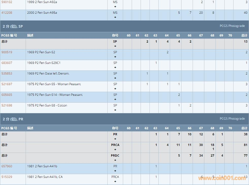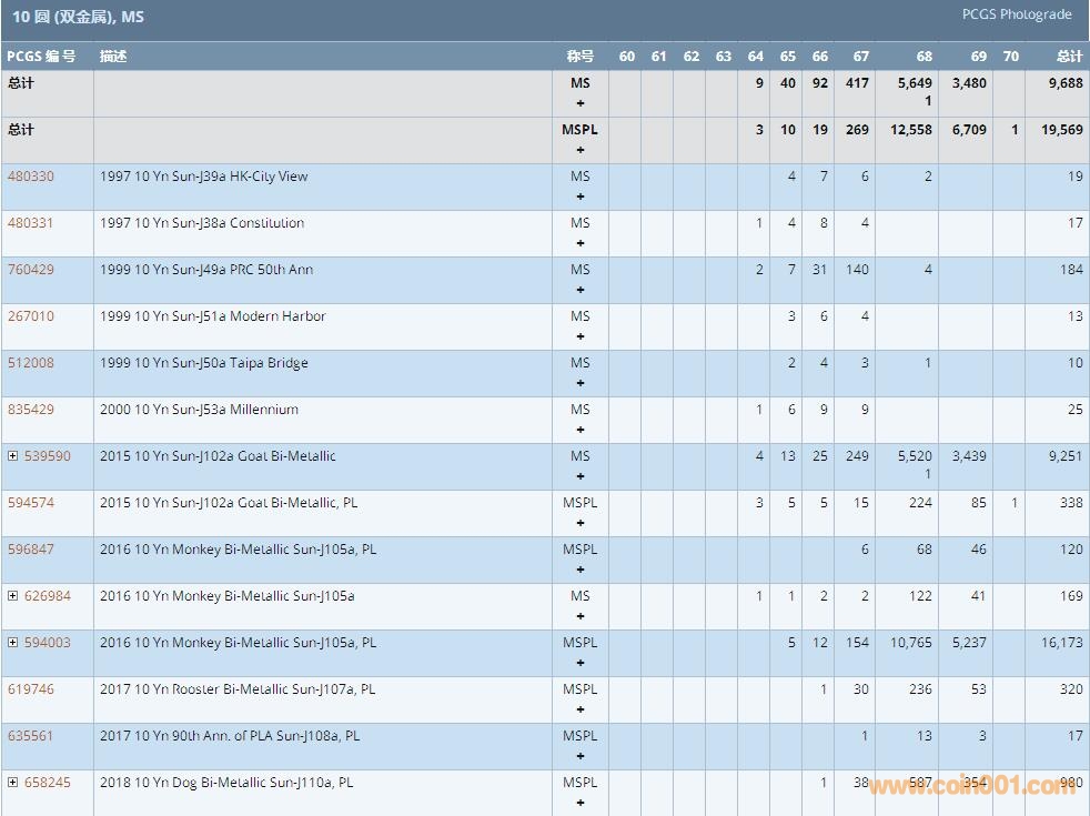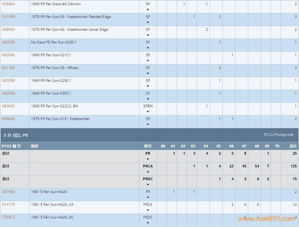 PCGS硬幣評級數(shù)量報告 ..