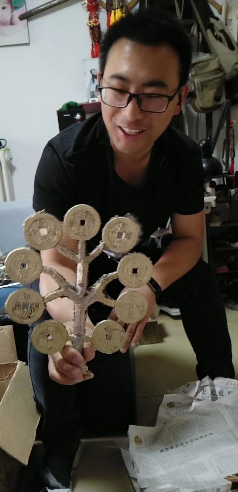 現(xiàn)代古法翻砂工藝品金錢樹,工藝到位制作考究,鑄造這批藝術(shù)品的老藝人祖輩七代為鑄造古幣工匠藝人,第五代曾被調(diào)入宮中做帶班頭領(lǐng)官位緊次于小德張,此次老藝人重出江湖按失傳多年的古法加配老銅鑄造一批金錢樹供大家藏玩,因古法難度較大所以出成率極低,現(xiàn)特供朋友圈十束!每樹僅需288元!低仿花錢30一個也買不到,原生態(tài)未打磨,即可以回去打磨按個把玩又可以整體藏玩是不可多得又價格低廉名家鑄造的不二藝術(shù)珍品?。ㄒ蛉肥止ご蛟旃艓盼恢貌豢赡苈杂胁煌?