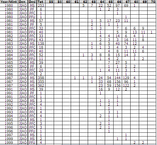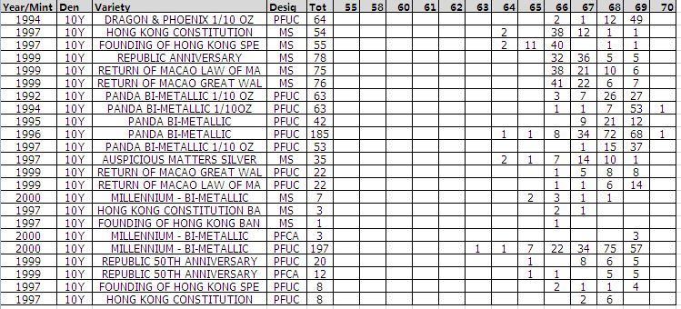 NGC硬幣評級分?jǐn)?shù)分布 ..