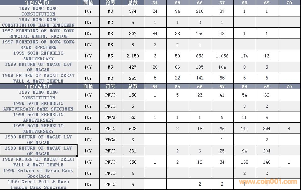 NGC硬幣評級數(shù)量報(bào)告 ..