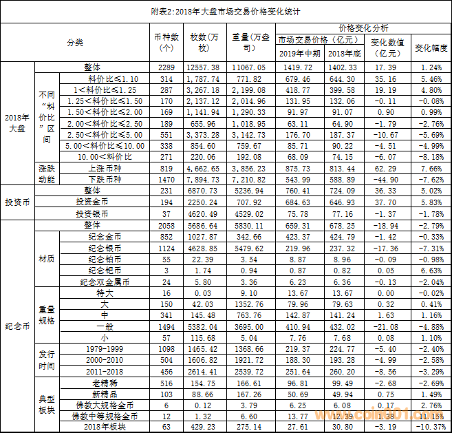 2018年大盤紀(jì)念幣的市場交易價格整體下跌,但其內(nèi)部結(jié)構(gòu)的變化狀況如何?
