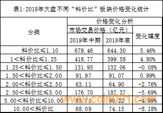(2)按“料價比”分類的結(jié)構(gòu)變化見表1。
