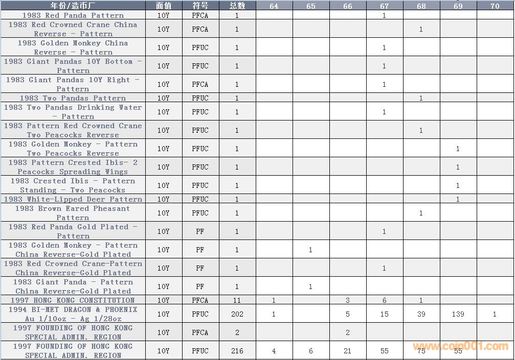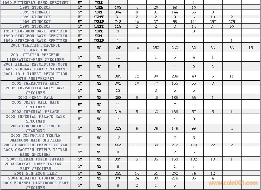 NGC硬幣評級數量報告 ..