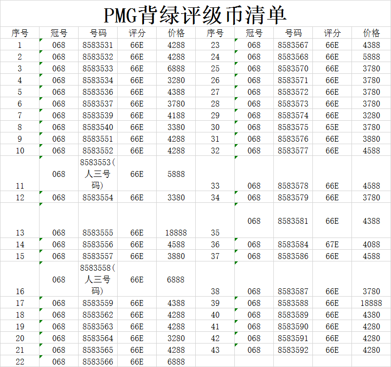 低價(jià)出售PMG評(píng)級(jí)背綠 ..