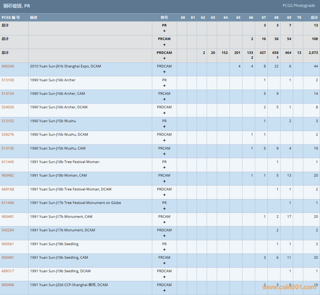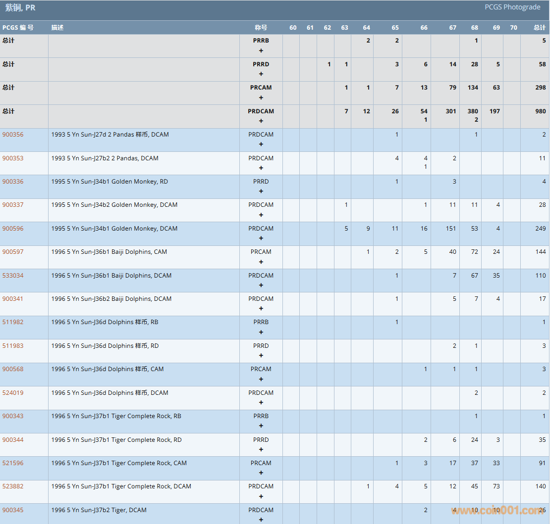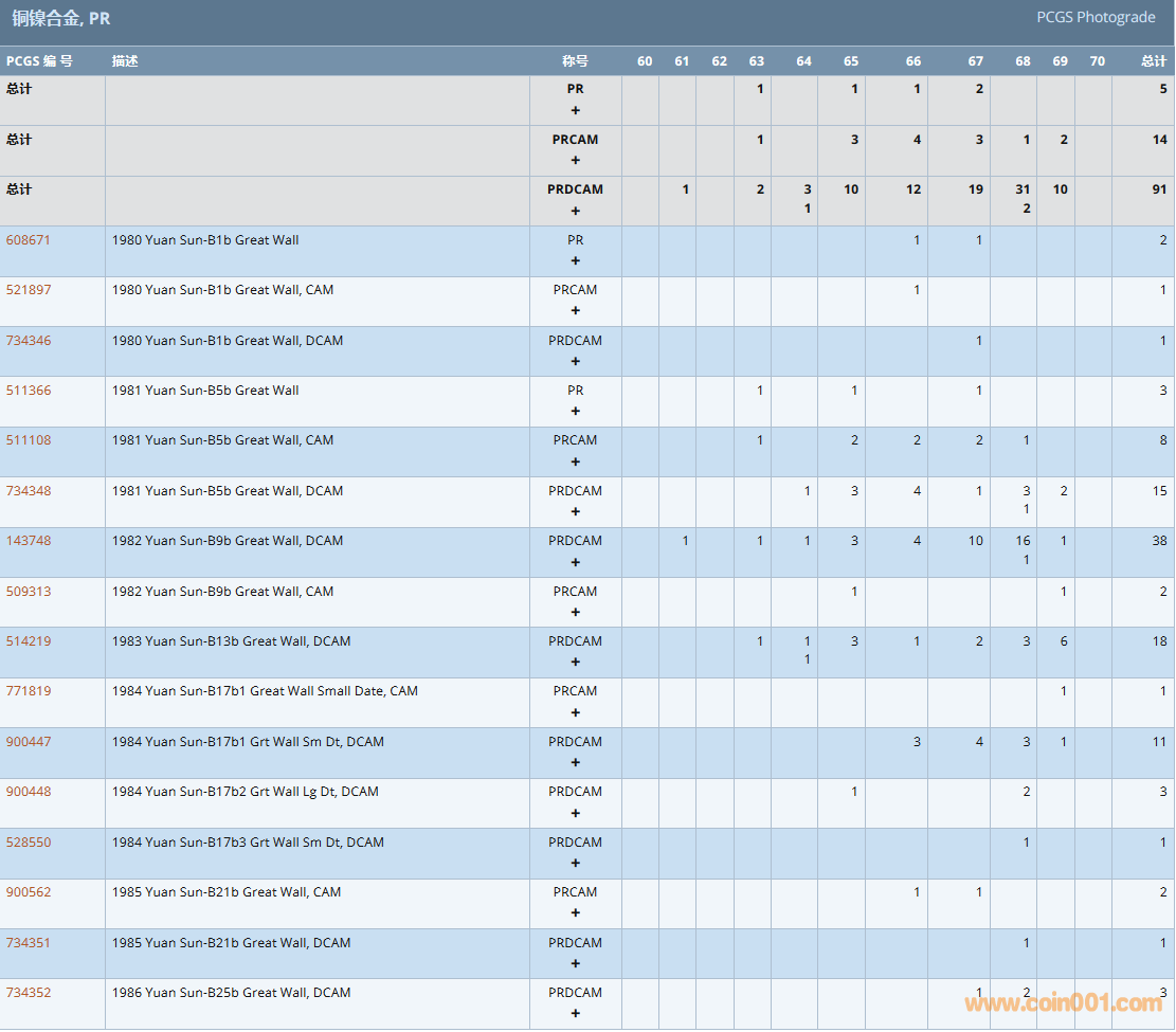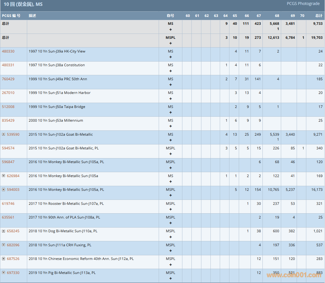 PCGS硬幣評(píng)級(jí)數(shù)量報(bào)告( ..