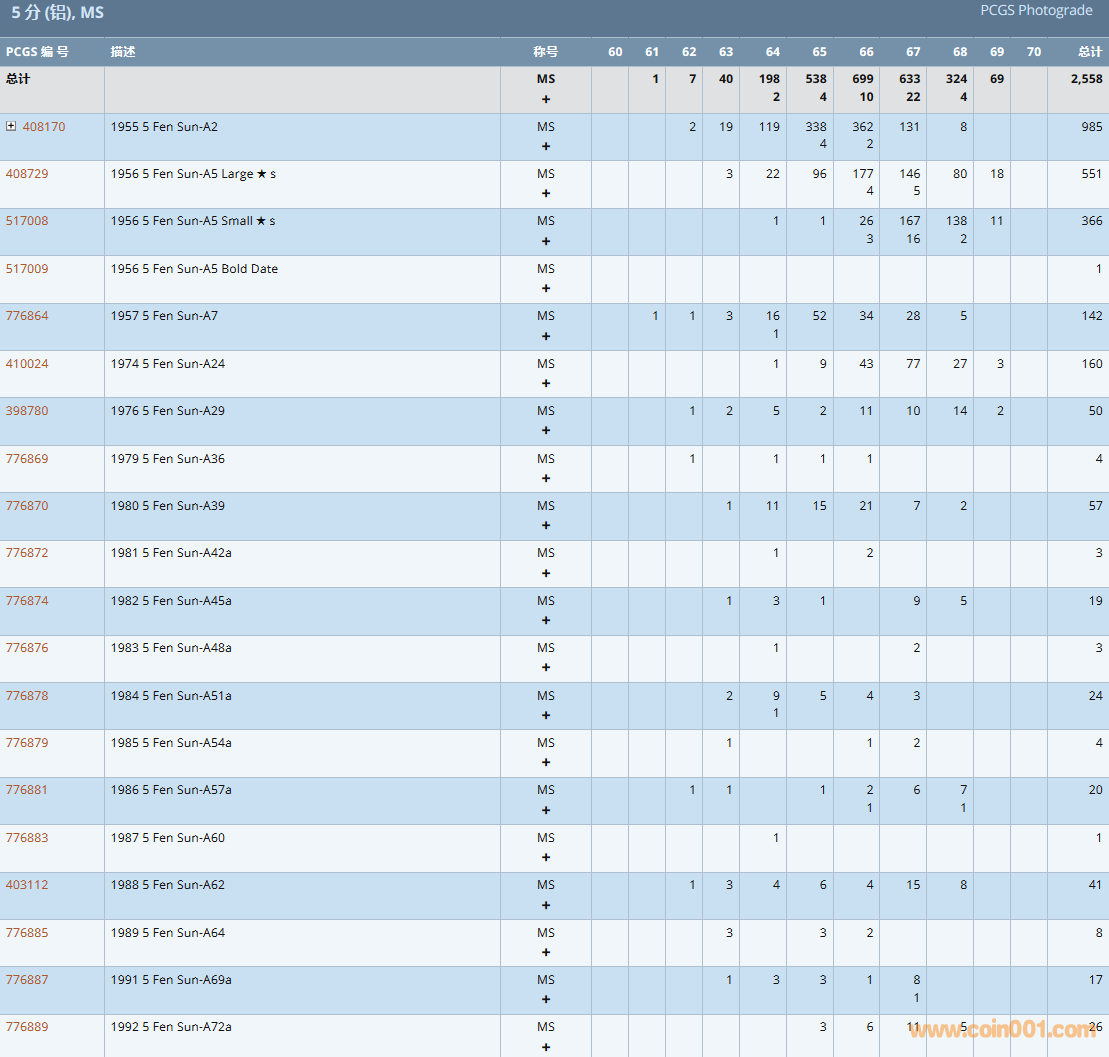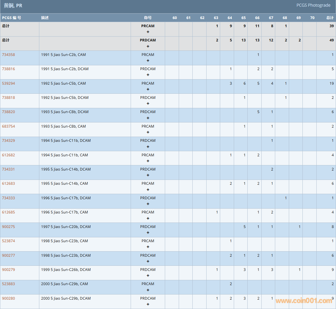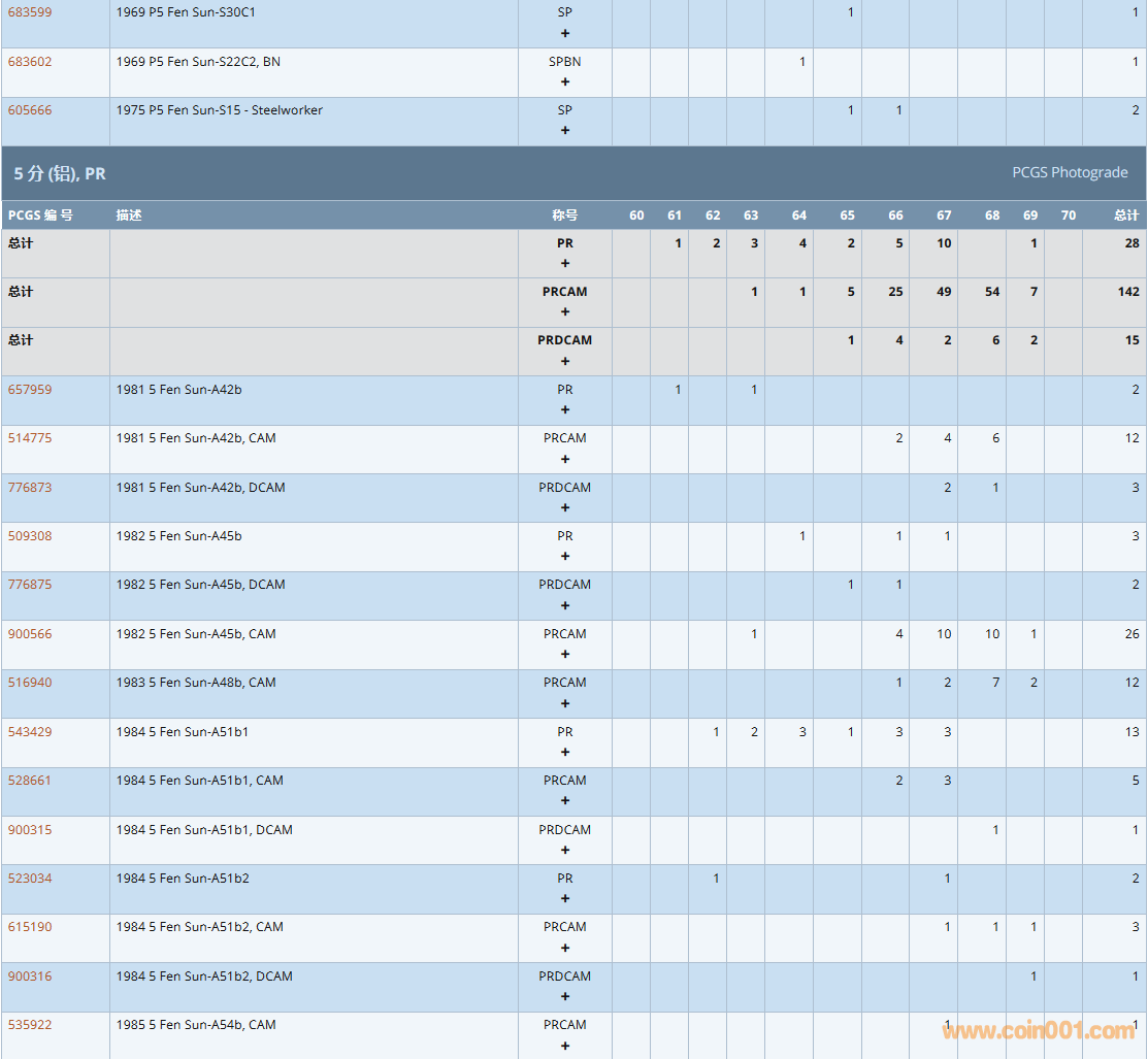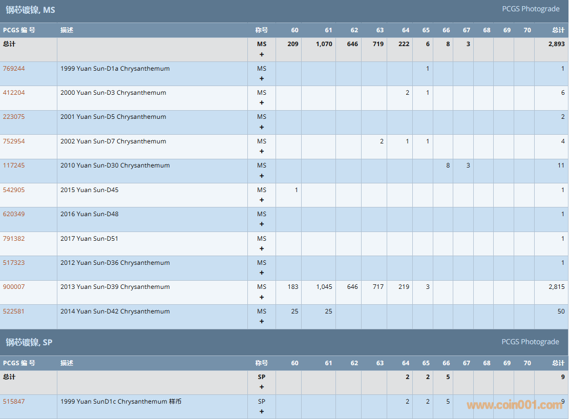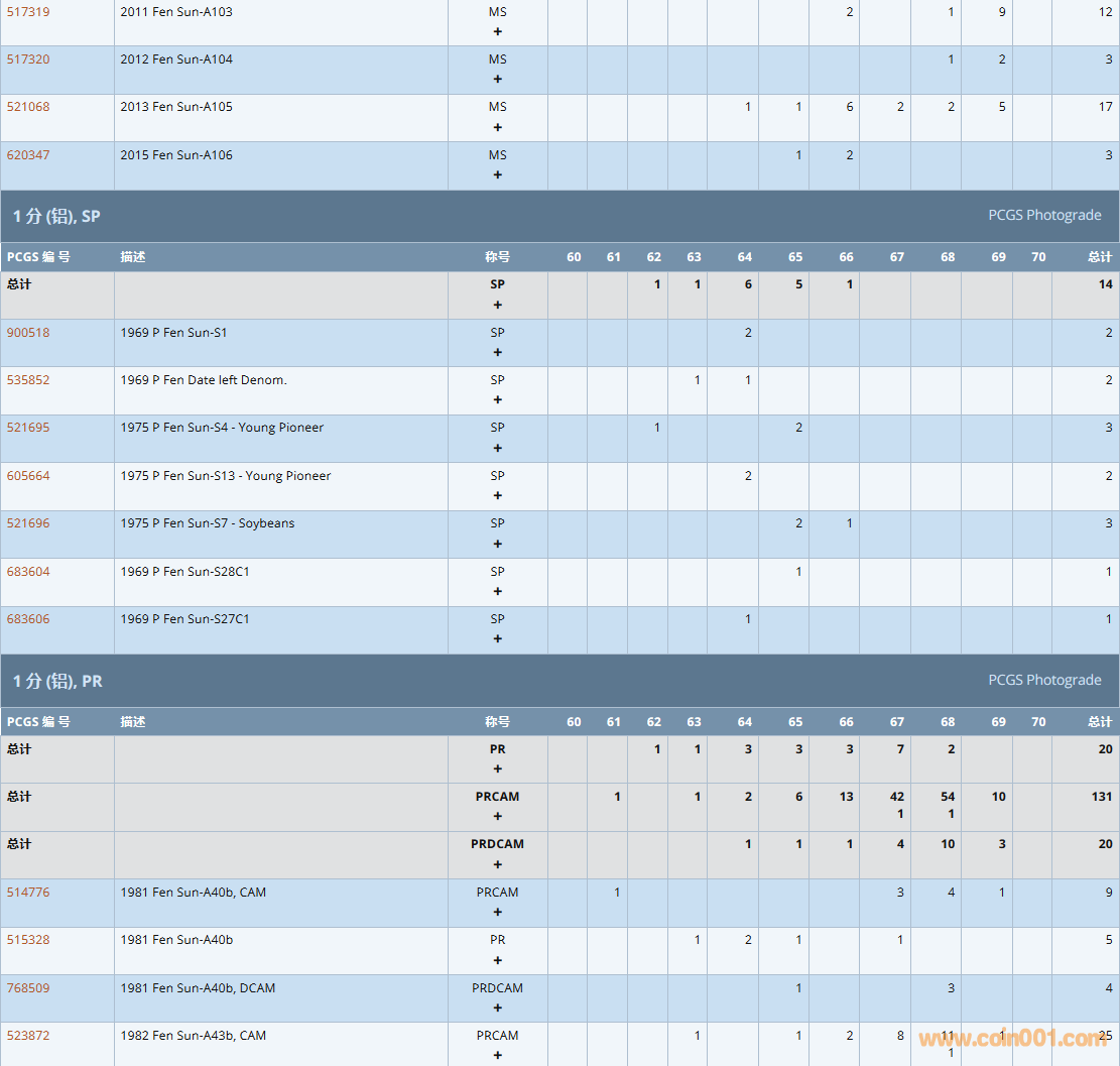 PCGS硬幣評(píng)級(jí)數(shù)量報(bào)告( ..