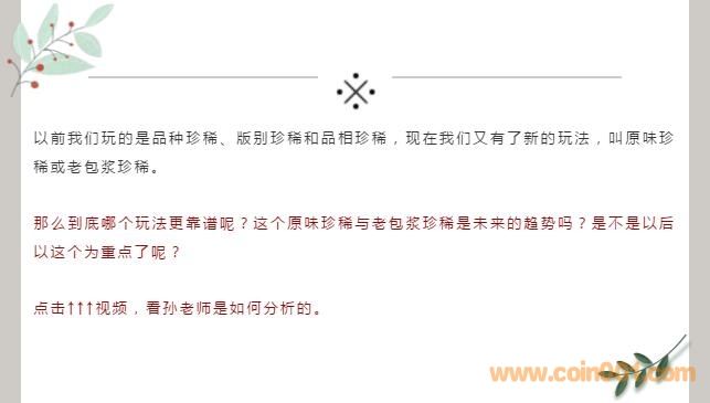 看了視頻,覺得孫老師講的歸納的觀點(diǎn)都很對。品種珍稀和版別珍稀才是收藏恒久的鐵律(但是再珍稀的幣,其品相也是必須講究的,如果品相太差,意義也就沒有了)。其次,品相珍稀也非常重要。有些幣雖然是大路品種,存量也不少,但由于年代巳久,當(dāng)時保護(hù)意識差,好品相的幣巳存世很少了,故其鶴立雞群式的高分幣也就成為了稀罕之物,價值凸顯應(yīng)在情理之中。還有一種為五彩包漿幣,雖然其有不同之處,但由于該帀巳存放年久,且存放方式恰巧,由于該幣氧化形成各色包漿所致,有的包漿彩雖可以比較的好看,但此類包漿性質(zhì)往往較為復(fù)雜,有的也可以以人為的手段來獲得,如養(yǎng)漿做漿,故不是很過硬,需要有一定的分辨能力才行。