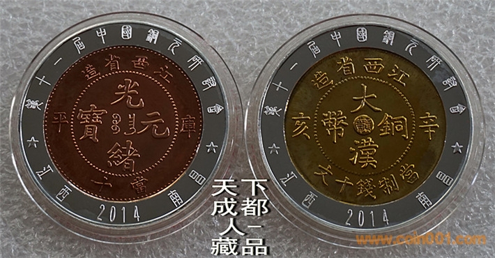 正圖:江西光緒庫平、大漢銅幣正面圖及主題文字