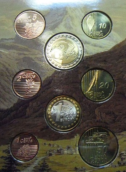 3、4、5圖是瑞士歐元樣幣,數(shù)量很少。每套130元。歐洲各國都有自己的樣幣