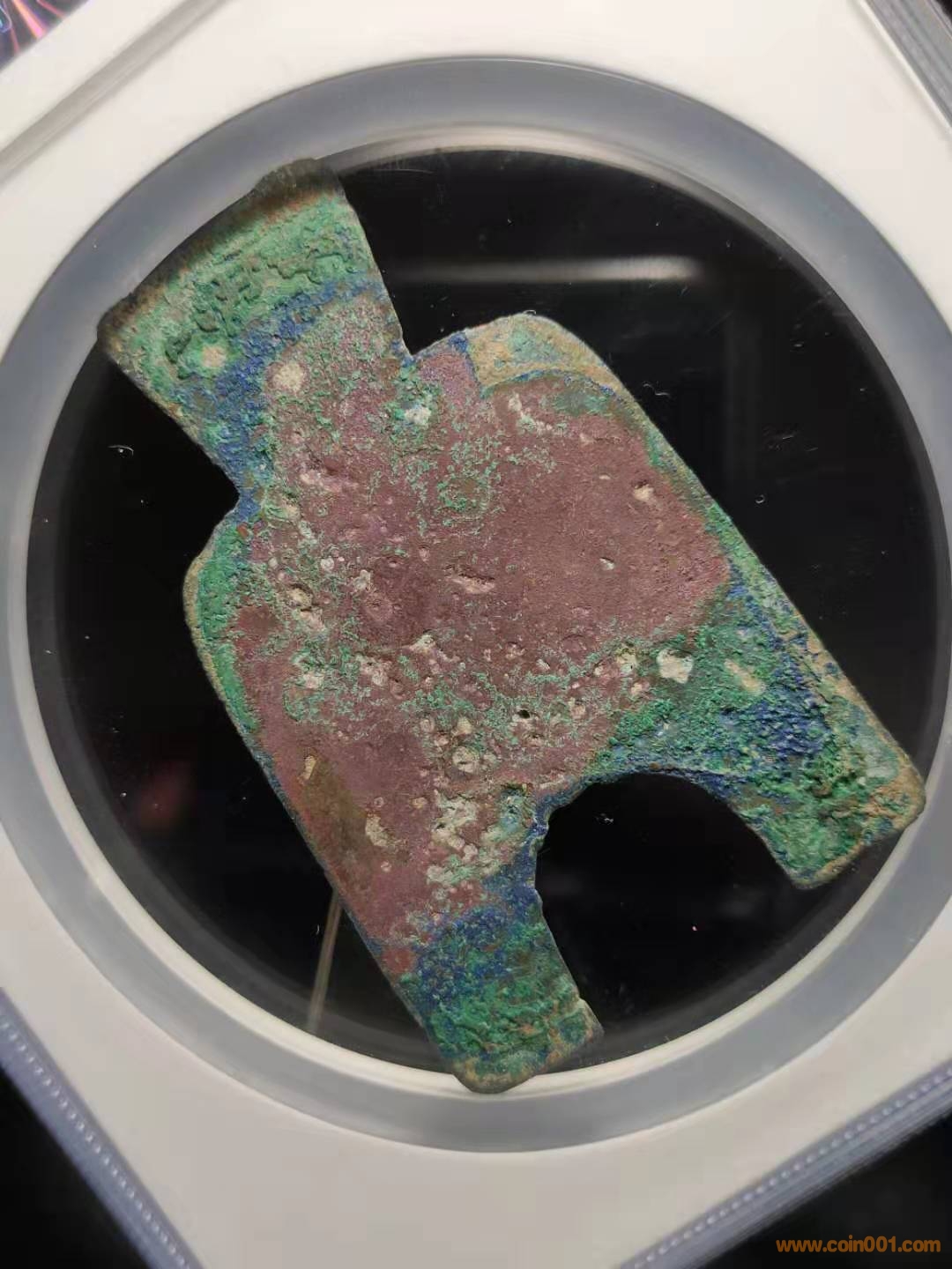 戰(zhàn)國(guó)時(shí)期魏國(guó)貨幣,安邑為地名,二釿的釿通“斤”為重量單位。這個(gè)系列有安邑半釿、一釿、二釿三個(gè)品種,版式分泥范和石范(較少),相對(duì)而言石范無(wú)論是字口還是工藝,都比泥范更佳。此枚綠銹爆藍(lán)帶朱砂紅銹,字口清楚無(wú)清理滴水未沾,高大而厚重:高達(dá)66.7mm重27.9g。公博嚴(yán)評(píng)保真包老收藏?zé)o憂!鑒于網(wǎng)站限制圖片大小,欲看高清圖請(qǐng)加微信75553881了解!
