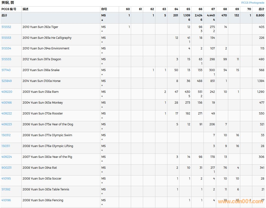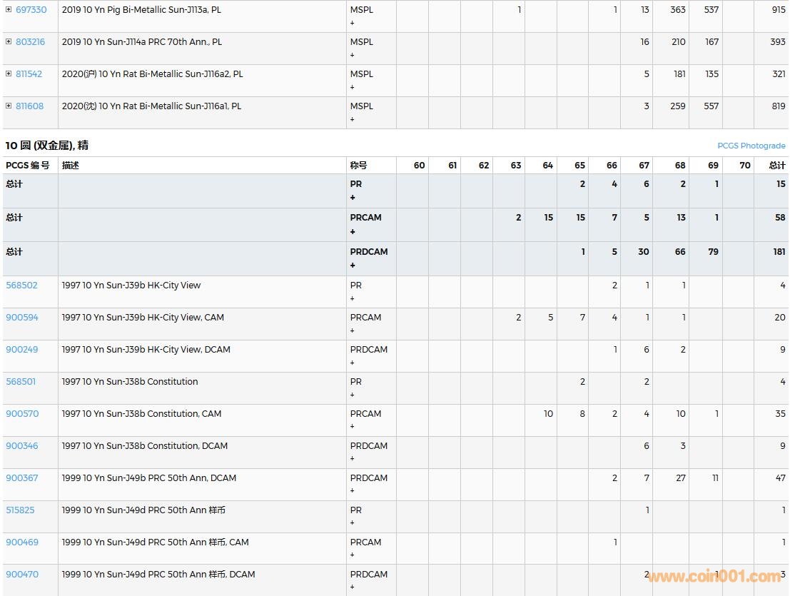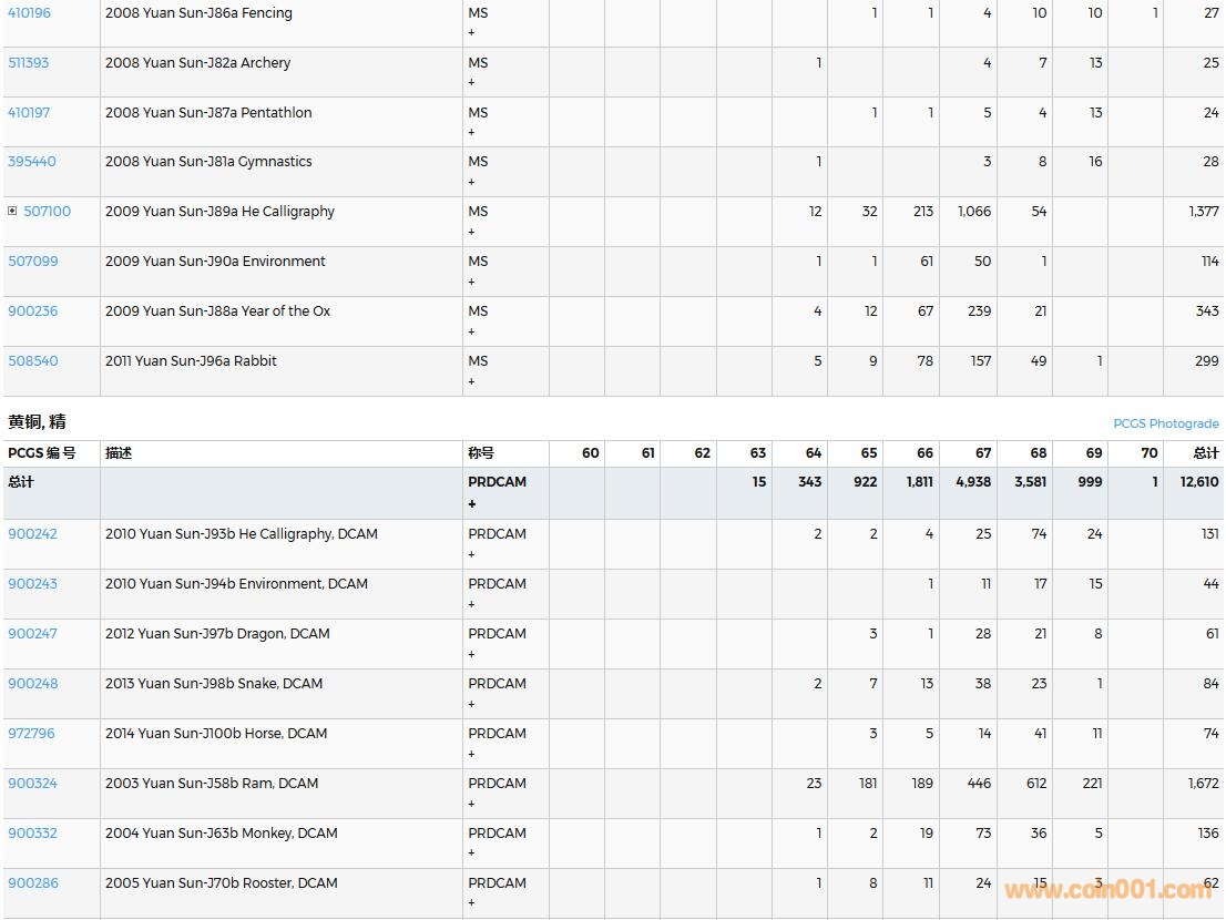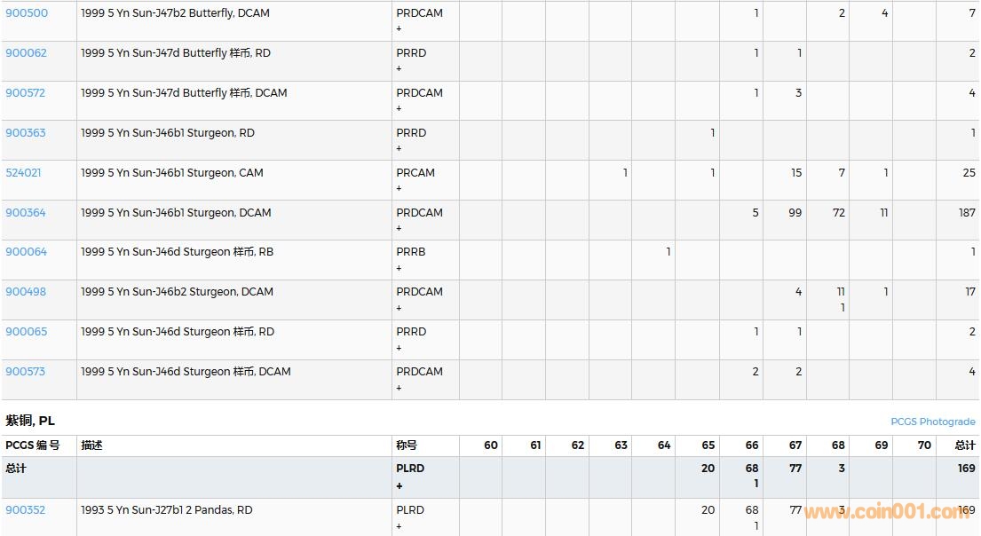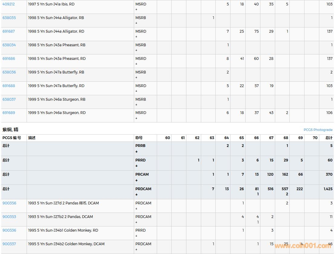 PCGS硬幣評級數量報告( ..