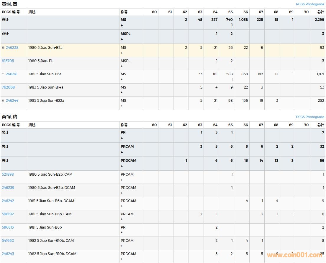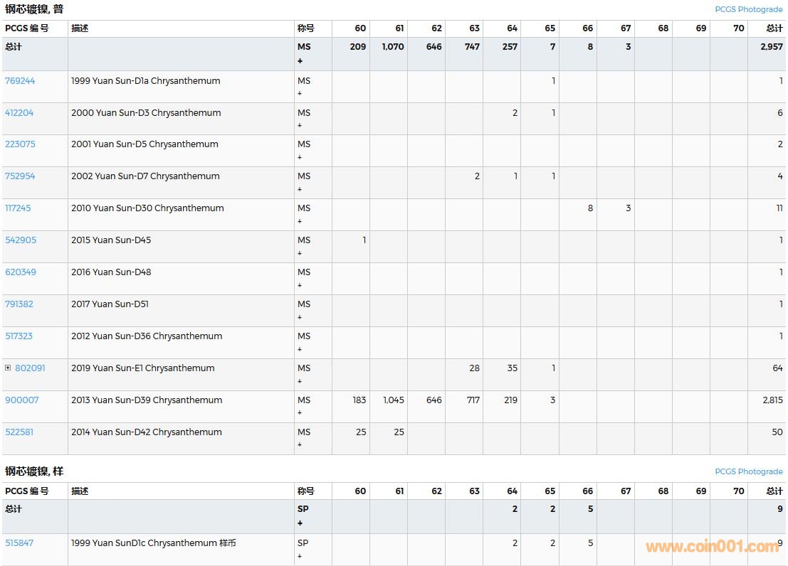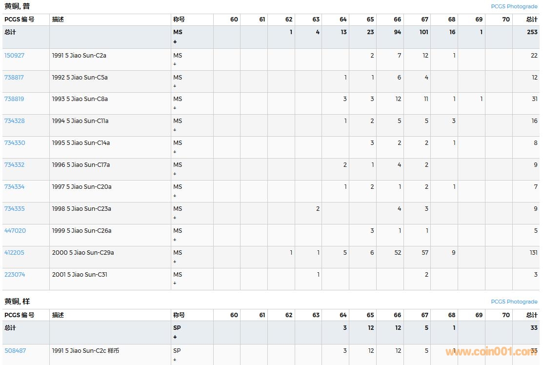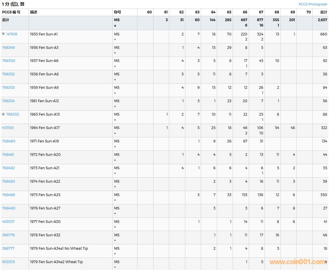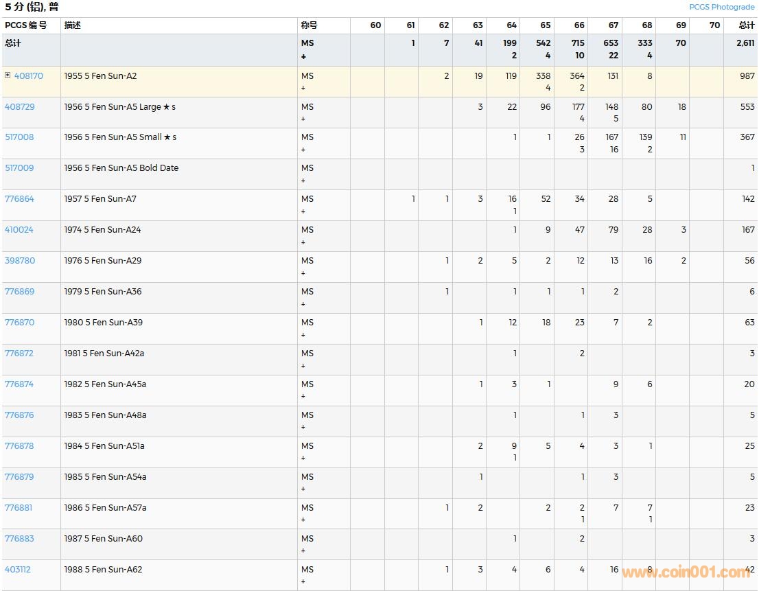 PCGS硬幣評級數量報告( ..
