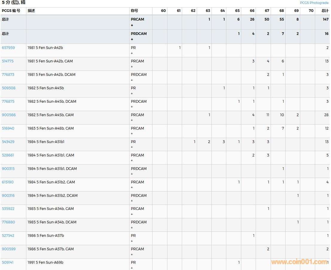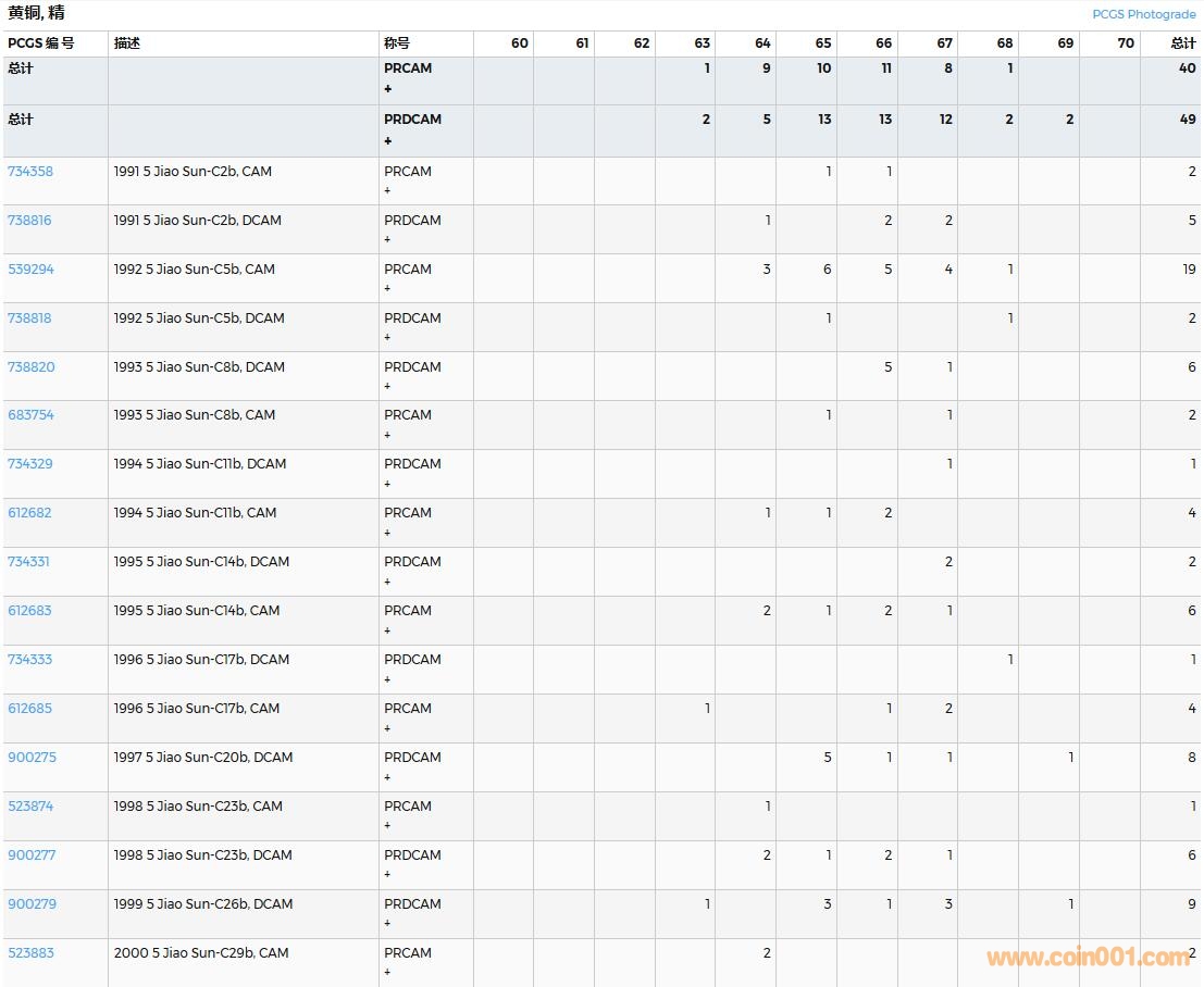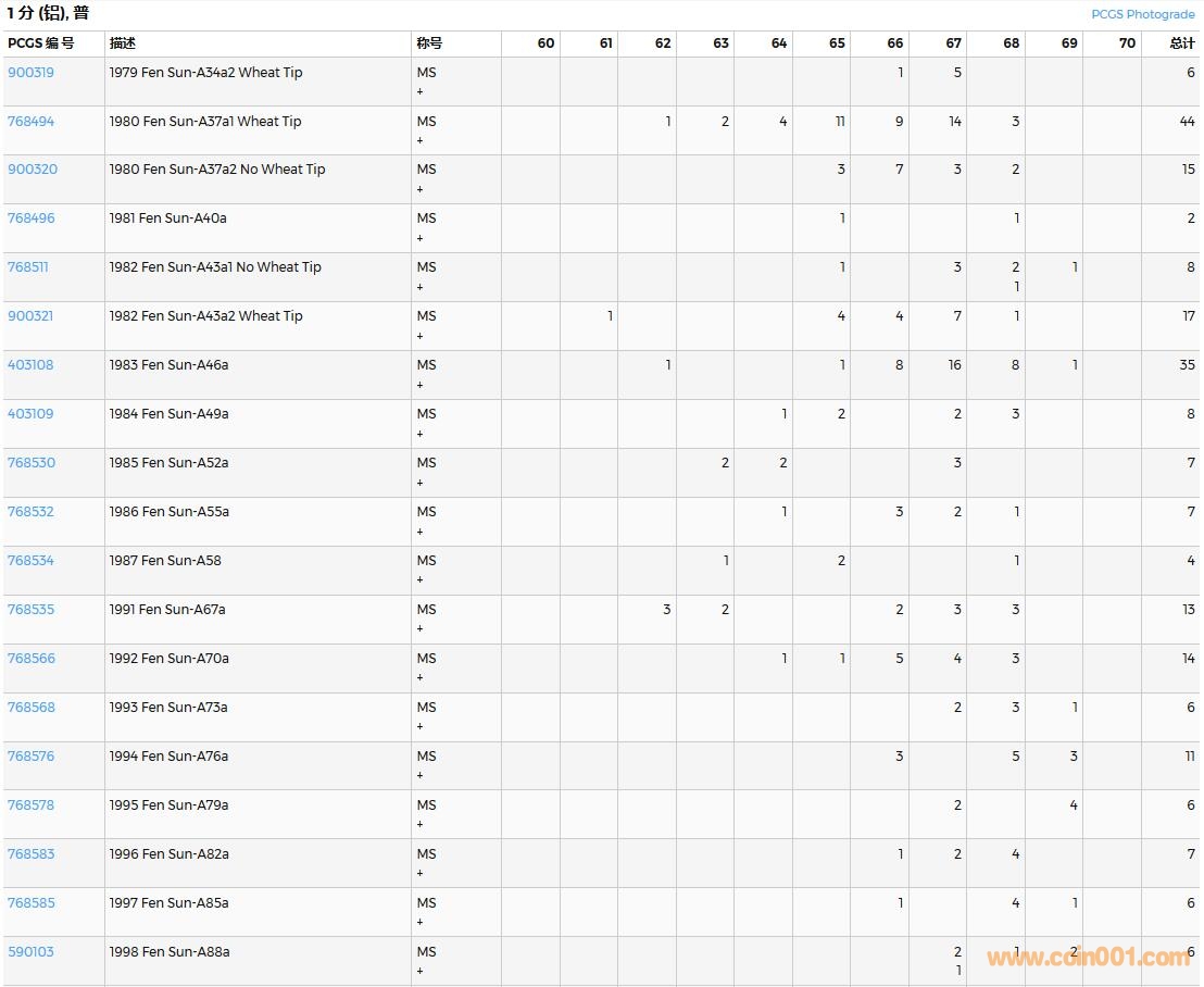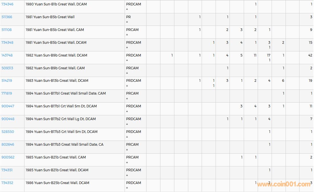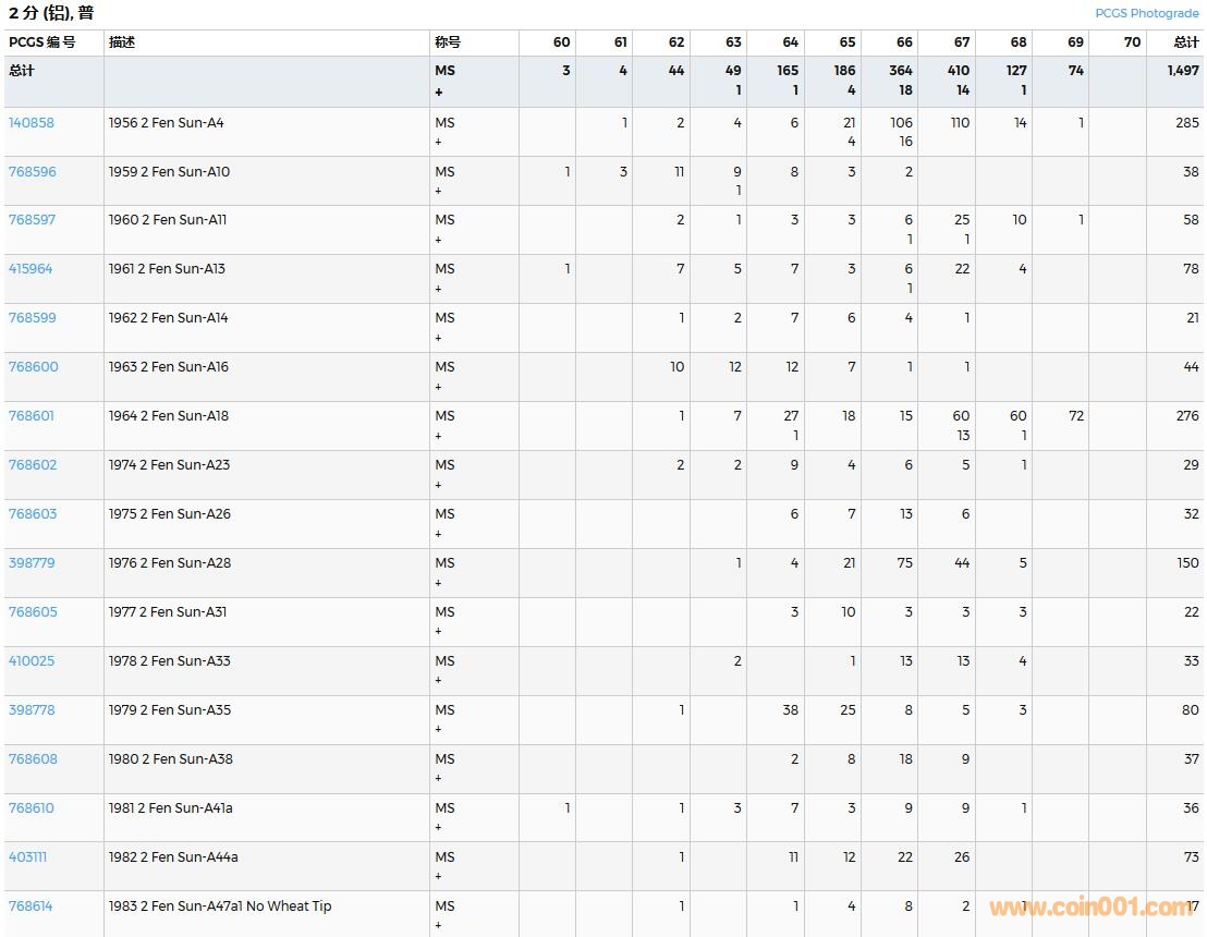 PCGS硬幣評級數量報告( ..