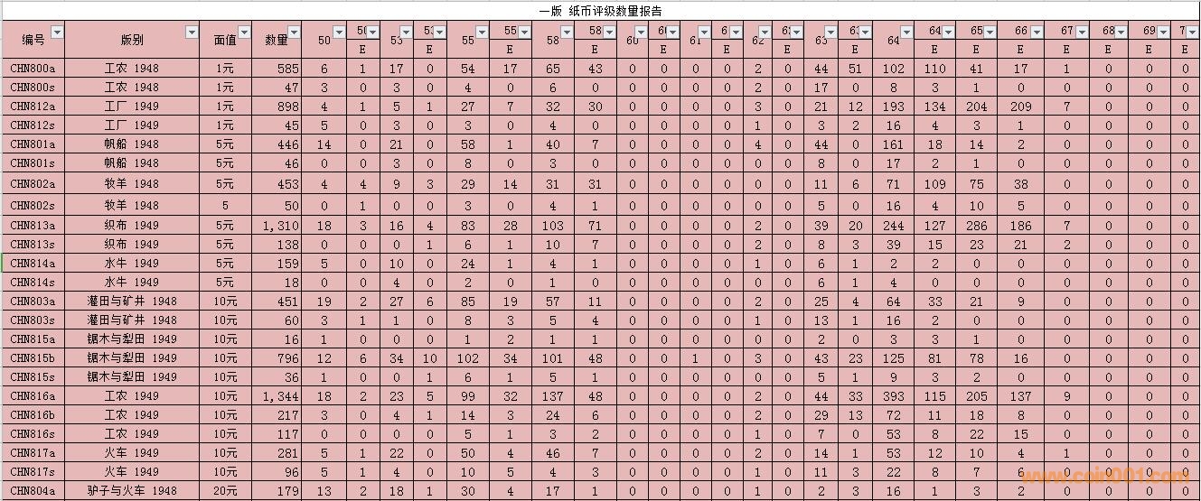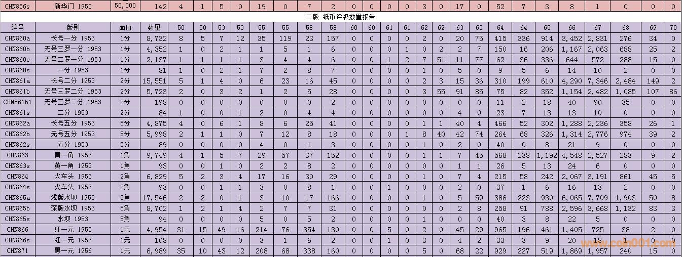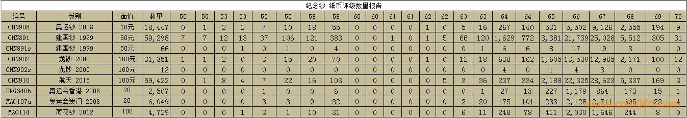 PMG紙幣評(píng)級(jí)數(shù)量報(bào)告