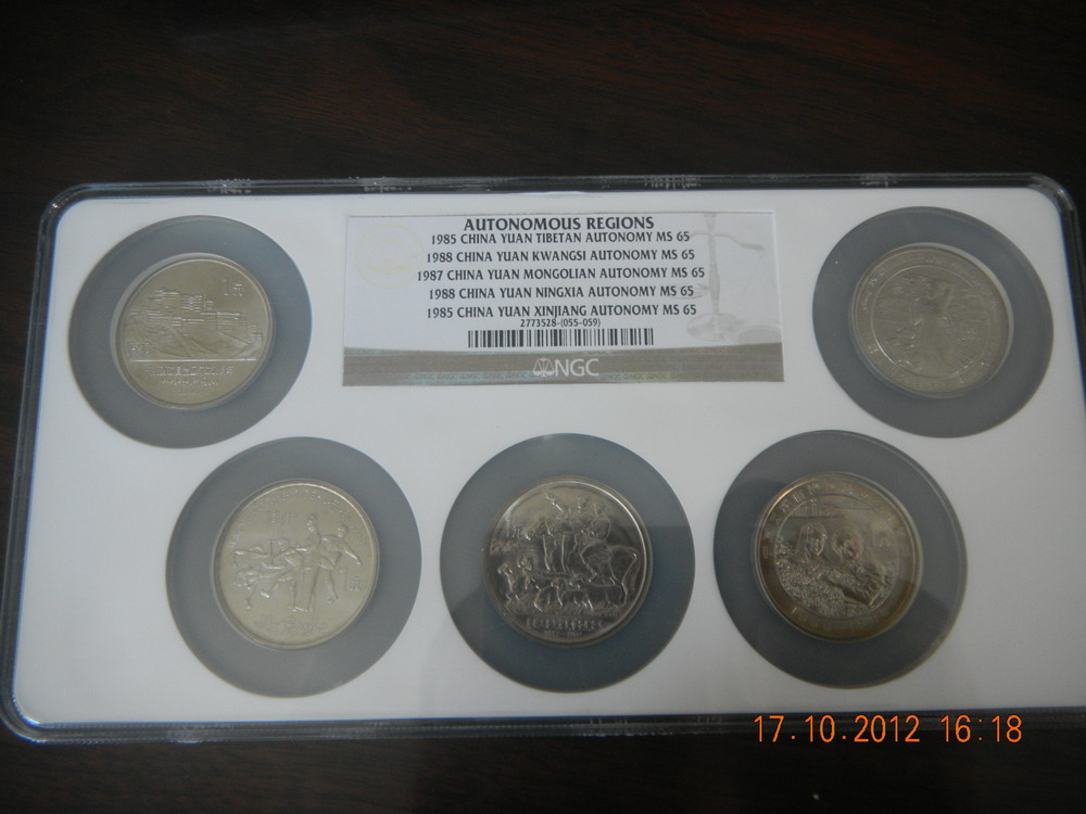 67分NGC多幣封裝紀(jì)念幣,每個品種多幣封裝,市場上單枚的NGC評級幣常見,但打成多幣的很少見,同分?jǐn)?shù)多幣的更是少見,以下紀(jì)念幣同分?jǐn)?shù),全部為67分。六運會:2880元,三枚裝;35周年:2780元,三枚裝;亞運會:1880元,兩枚裝;五大自治區(qū):6880元,5枚裝。