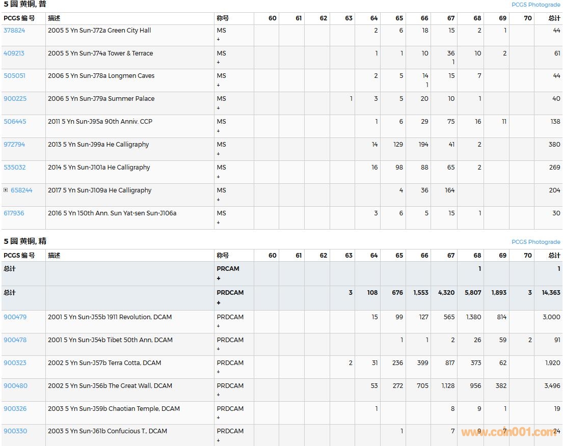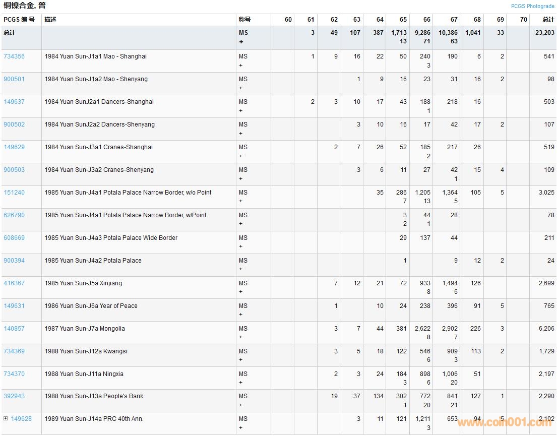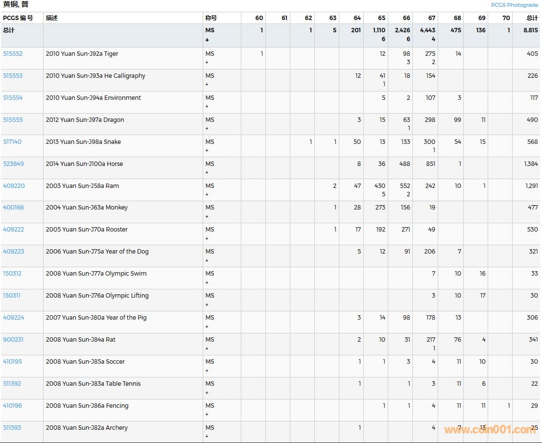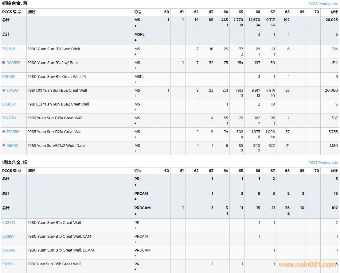 PCGS硬幣評級數(shù)量報(bào)告( ..