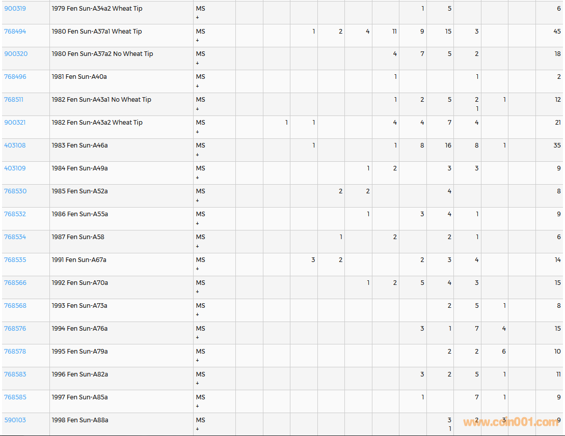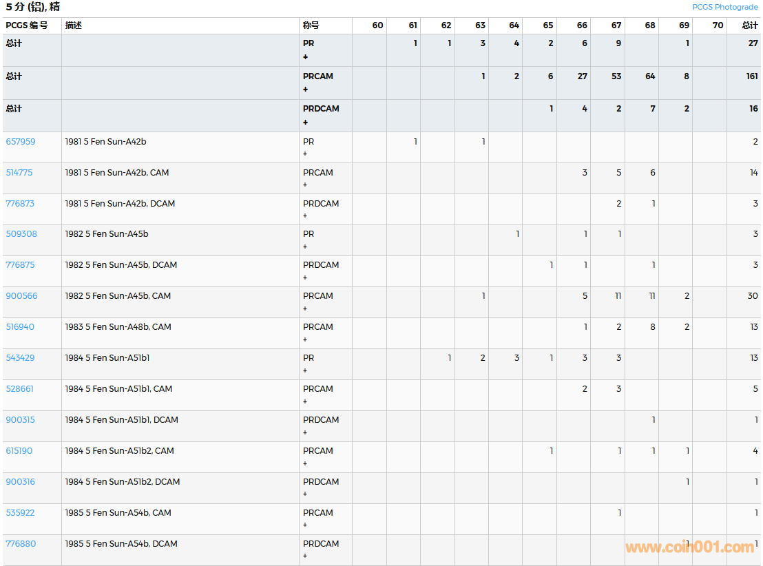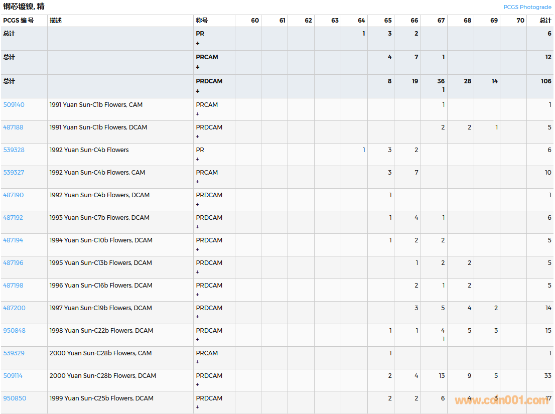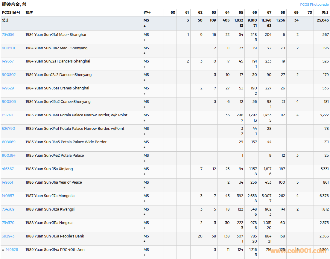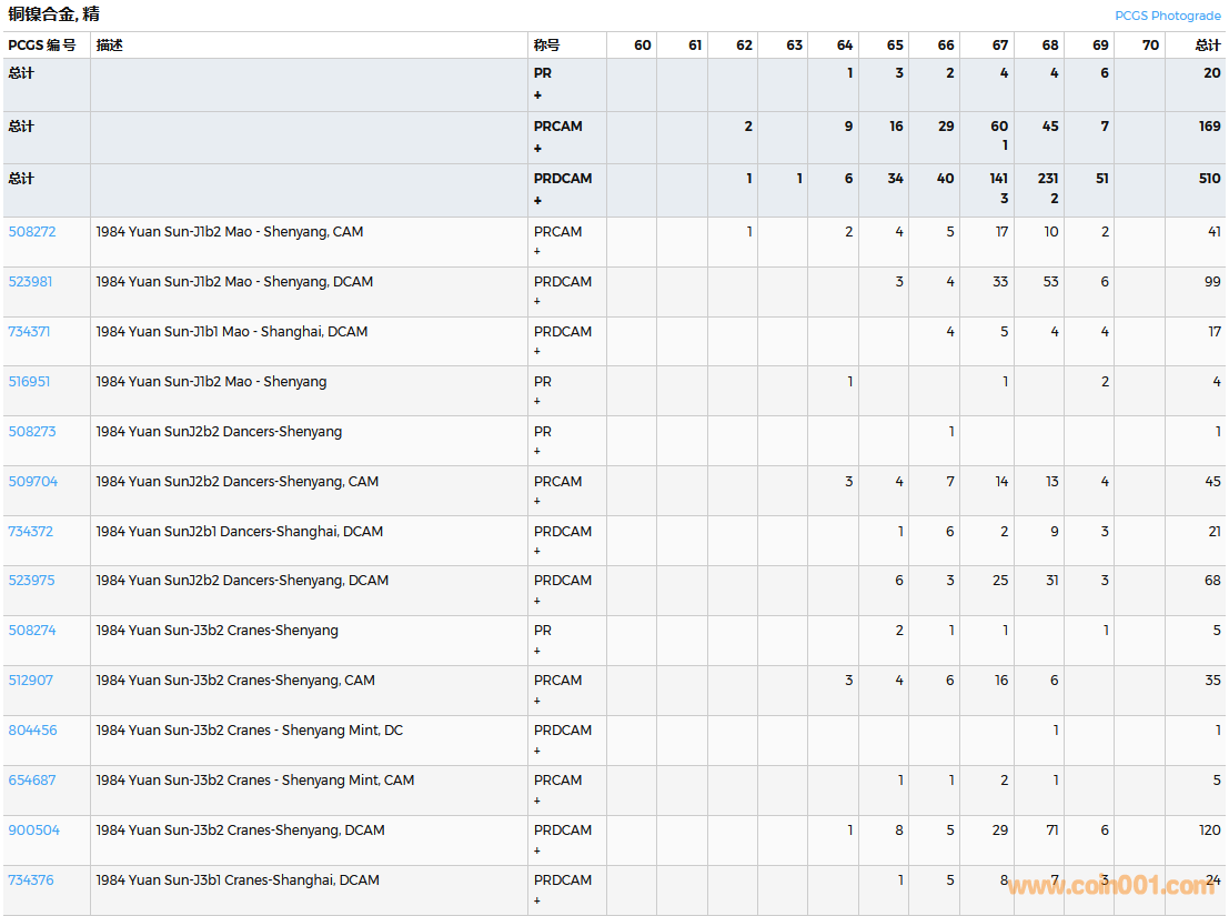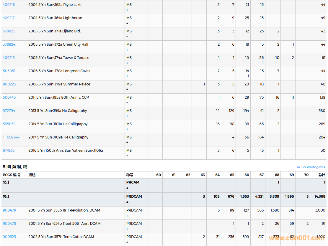 PCGS硬幣評(píng)級(jí)數(shù)量報(bào)告( ..