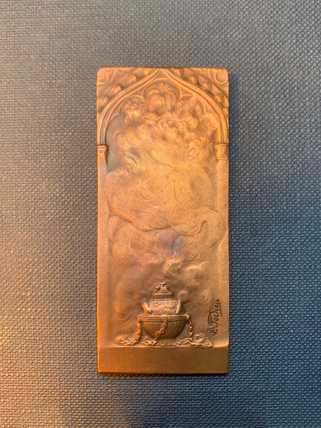 罕見,小章大氣。巧借香爐,升出氤氳馨香,生出教堂莊嚴(yán)靜穆。(彌撒中神父用小勺從香船中挖一小勺乳香,撒到香爐中的木炭上,經(jīng)燃燒發(fā)出馨香,擺蕩香爐,表示祈禱上達(dá)天庭。)