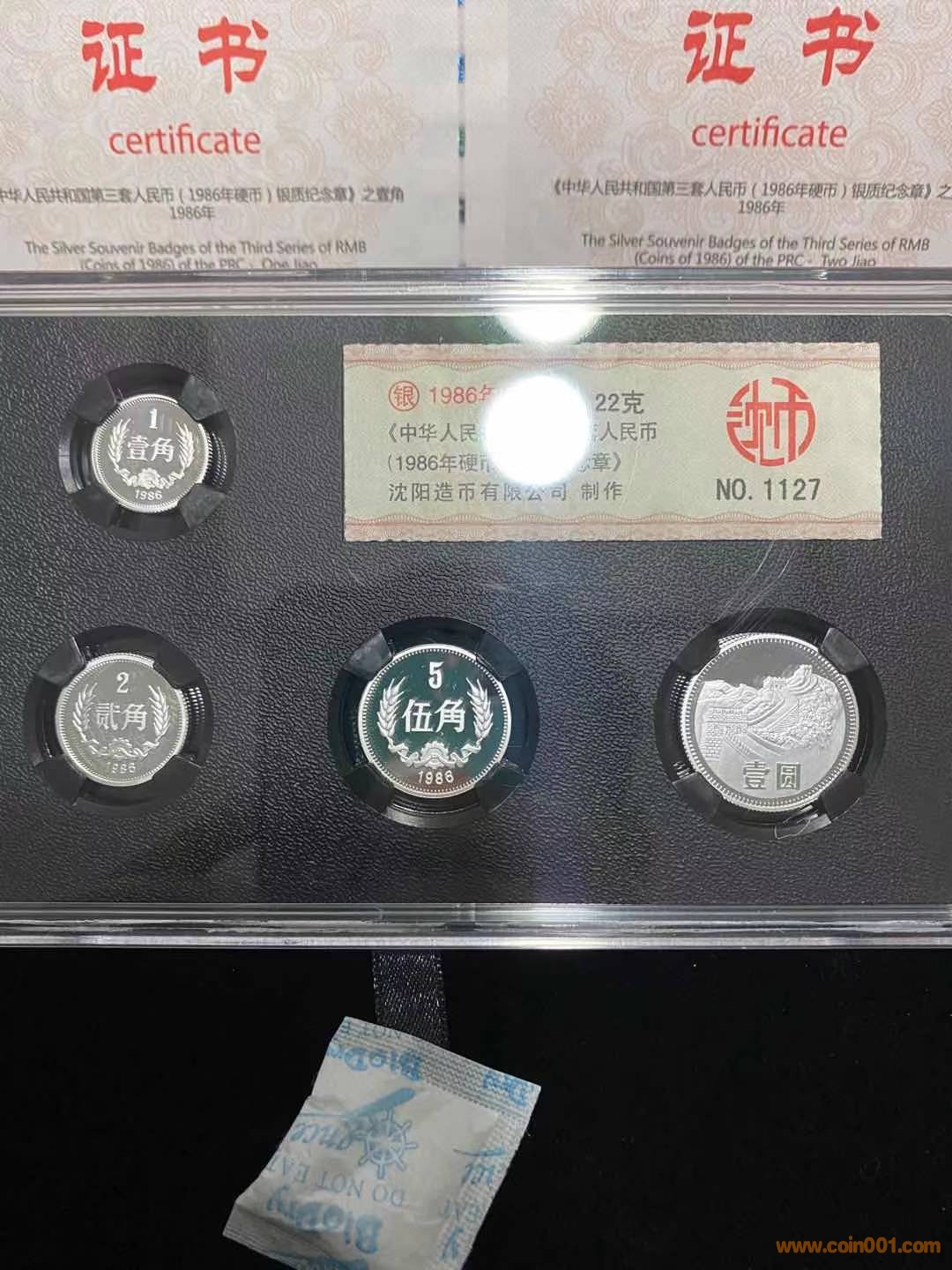 《中華人民共和國第三套人民幣1986年硬幣純銀(22克)純銀質紀念章》